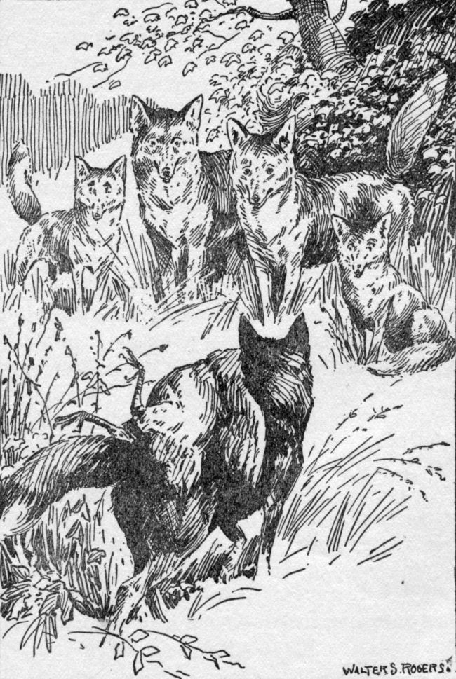 Away up in the North Woods lived a family of foxes. They had big, bushy tails, like a dust brush, and they wore furry coats. Some of these furry coats were of a reddish-yellow color, and some of them a sort of gray. The foxes had long sharp noses and sharp teeth, and they were very sly and cunning, as they had need to be.