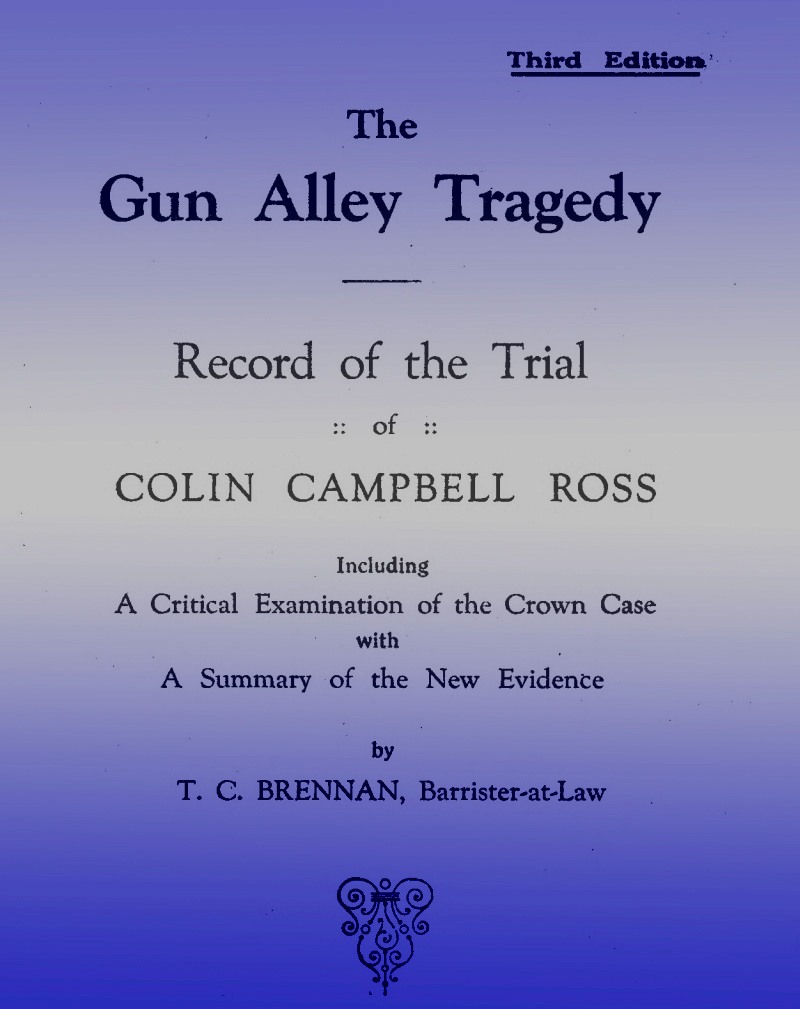 As Mr. Brennan points out, he is not undertaking to prove that Ross was innocent of the Gun Alley murder. Anyone who reads his closely reasoned pages can have little doubt that such is his opinion. But his task is simpler. It is to show that Ross should not have been convicted on the evidence, that the evidence for the Crown was, to a large extent, contradictory—far more so than in the heat and passion of the trial was allowed to appear. He is able to go even further than that, and to show that a great part of it, so far from being cumulative on other parts, as the jury may have naturally believed, was really destructive of those other parts.