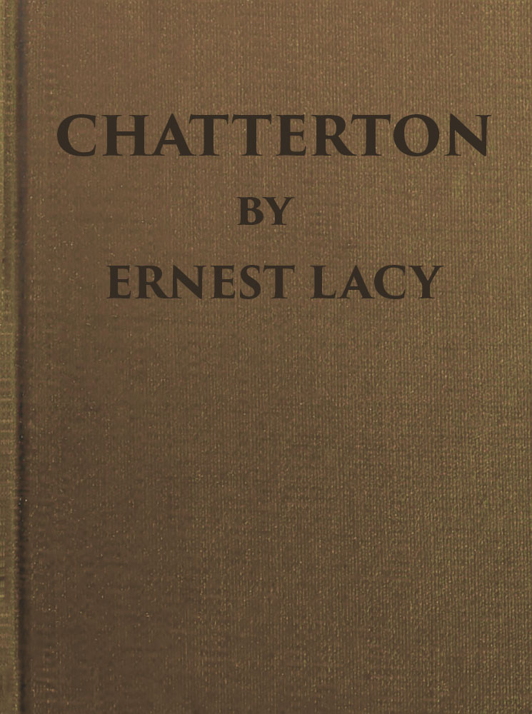 The Project Gutenberg EBook of Chatterton, by Ernest Lacy This eBook is for the use of anyone anywhere at no cost and with almost no restrictions whatsoever. You may copy it, give it away or re-use it under the terms of the Project Gutenberg License included with this eBook or online at www.gutenberg.org/license Title: Chatterton Author: Ernest Lacy Release Date: September 28, 2020 [EBook #63327] Language: English Character set encoding: UTF-8 *** START OF THIS PROJECT GUTENBERG EBOOK CHATTERTON *** Produced by Jessica Hope