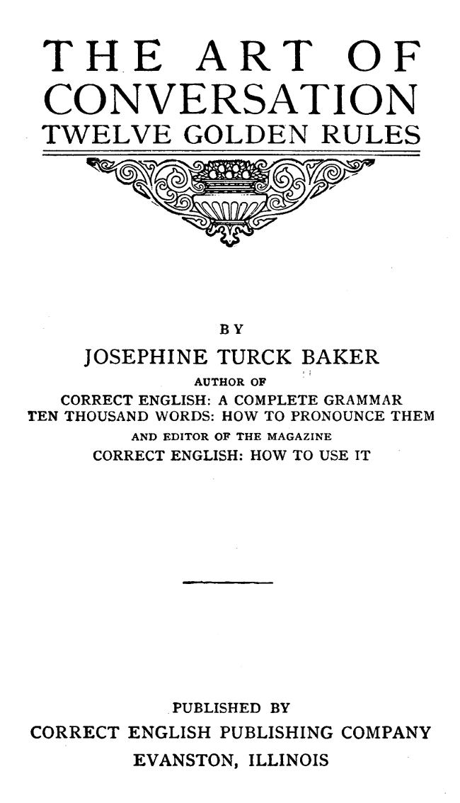 | Note: | Images of the original pages are available through Internet Archive. See https://archive.org/details/artofconversatio01bake |