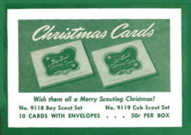 Christmas Cards Wish them all a Merry Scouting Christmas! No. 9118 Boy Scout Set No. 9119 Cub Scout Set 10 CARDS WITH ENVELOPES 50¢ PER BOX