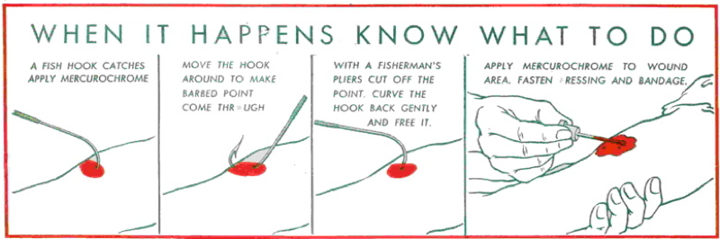 Keep a bottle of Mercurochrome handy for the first aid care of all minor wounds. Do not fail to call a physician in more serious cases.