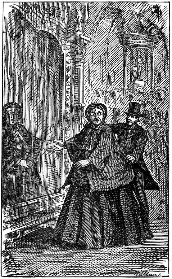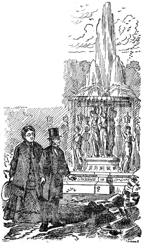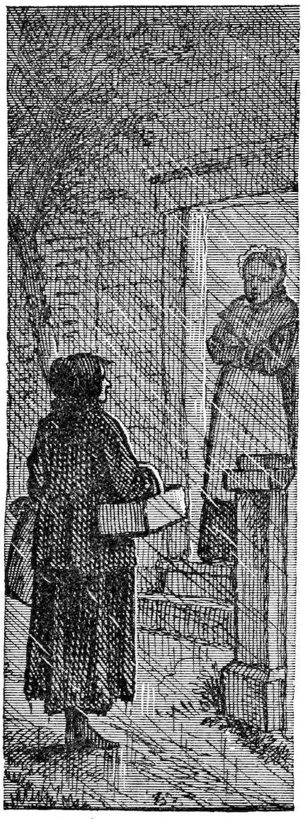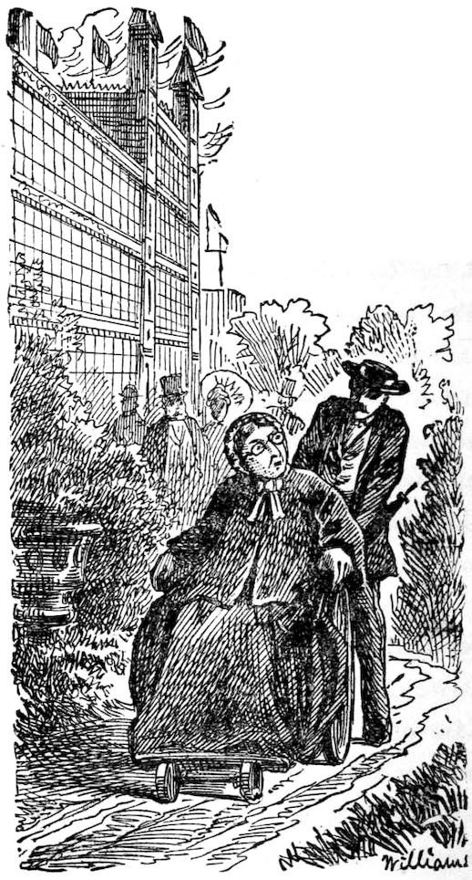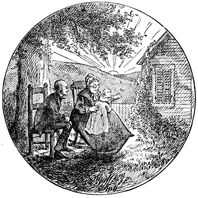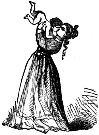 575But I hadn’t time to weep long in my pure blissfulness of spirit, for Judge Snow proposed we should all walk over and see the house, and he took right holt of my arm and locked arms with me (he meant well, Josiah was right there) and we led the way, and Thomas Jefferson and Maggy a follerin’ as happy as any two turtle doves I ever see, and then Whitfield and Tirzah Ann, and then Josiah and—well, who do you s’pose he was a waitin’ on. What female do you s’pose he was a carryin’ in his arms, and wouldn’t let no one else touch it if he could help it, and kissin’ her right before his lawful pardner too, and she enjoyin’ of it? Who was it? I can’t keep in a minute longer; it was the baby—Tirzah Ann’s little infant babe. I have kep’ still about it; I have held the baby back to surprise the reader and happyfy ’em. And so the hull procession of us walked over the grass, green as green velvet, under the pleasant shade trees, under the little vine covered gate, and so through the other yard jest as green and shady and pleasant, up into the house which was to be my boy’s home.