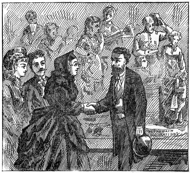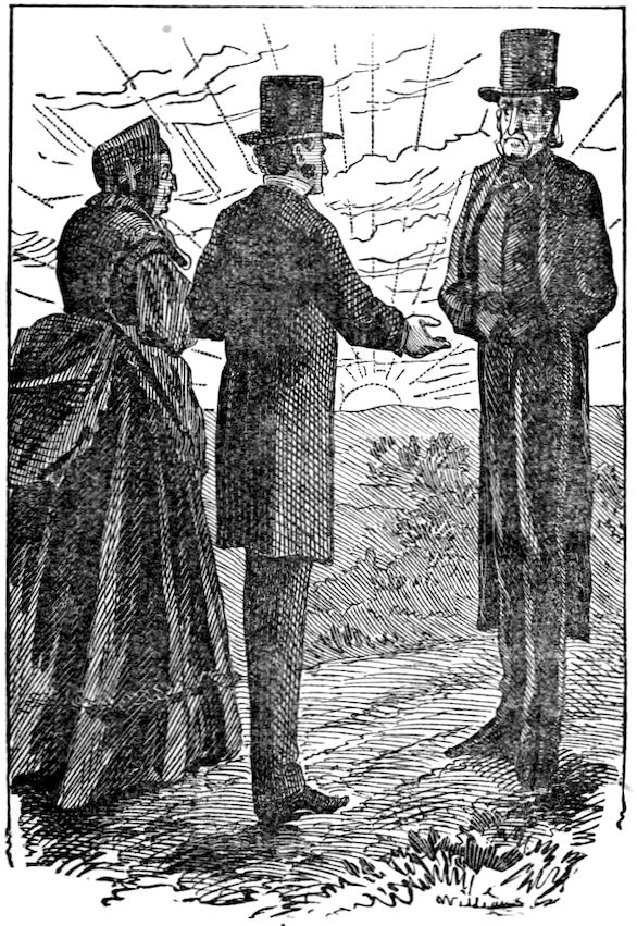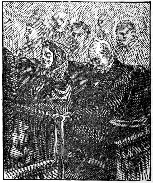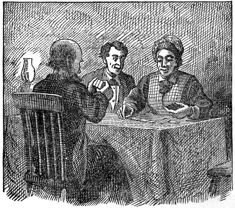 Says he, “It is a couple that don’t want to be gossiped about; that think marriage is sunthin’ too sacred and holy to be turned into a circus, with tinsel and folderols, and a big crowd of strangers a gazin’ on—the woman dressed up for principal performer, and the man for a clown. A couple that wants jest them they love best—”