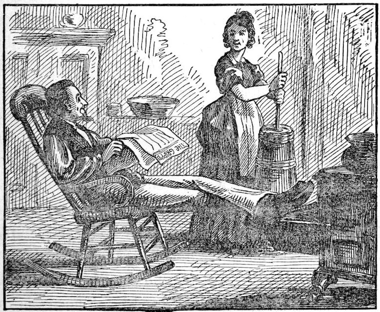 “What I want to know is, what we are goin’ to have for supper; there haint no bread nor nothin’, and I’d as lives eat bass-wood chips and shingles as to eat Betsey Slimpsey’s cookin’.”