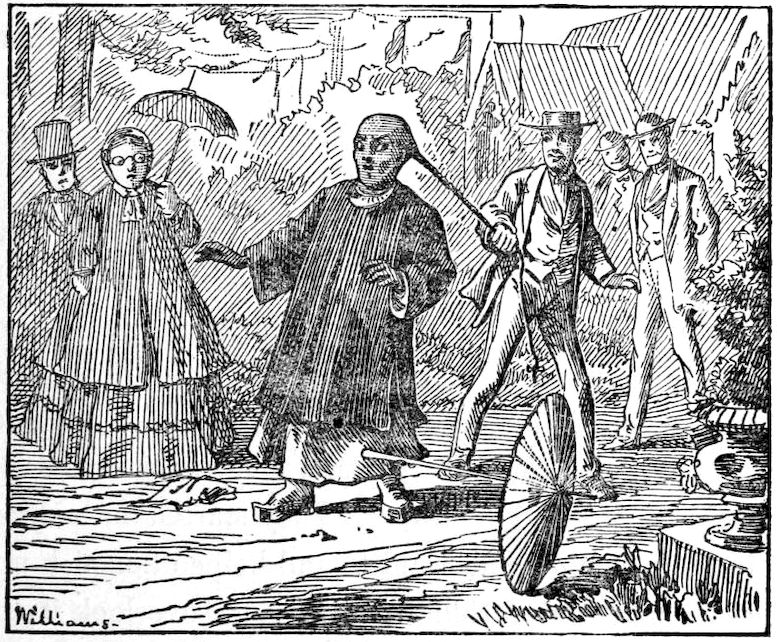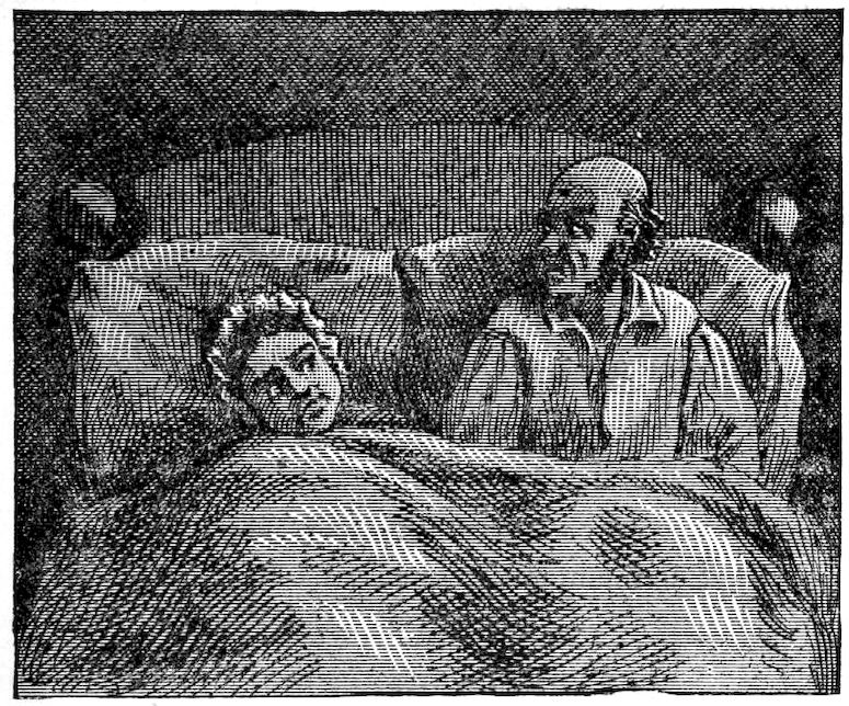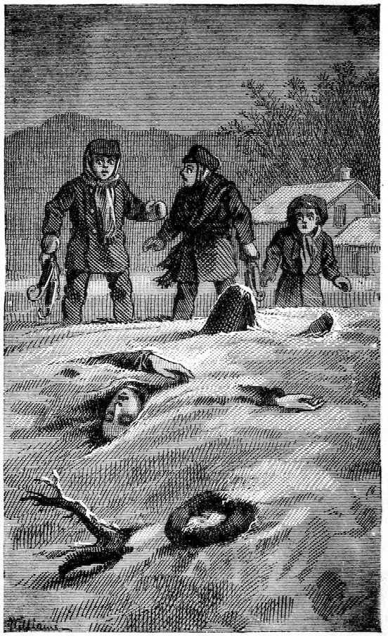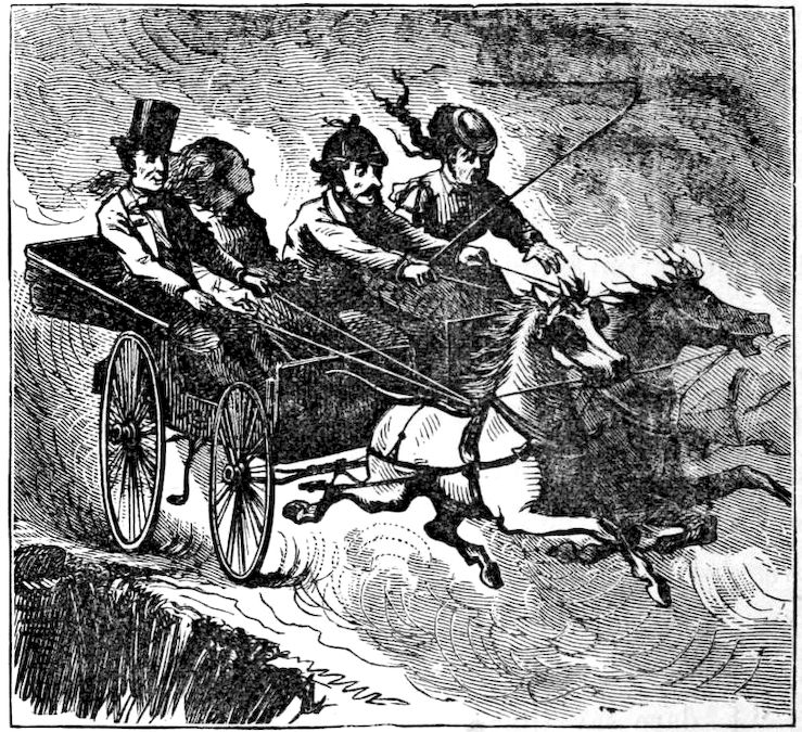 When they got to Whitfield’s cousins—where they expected to stay—they was away from home. Then they went to a second cousins; they was havin’ a funeral. Then they went to a third cousins, and they had the tyfus. Then they went to the only tarvern in the place; they was all right there, only the whoopin’ 564cough; and they never havin’ had it, took it, and come down in nine days—coughed and whooped awful.