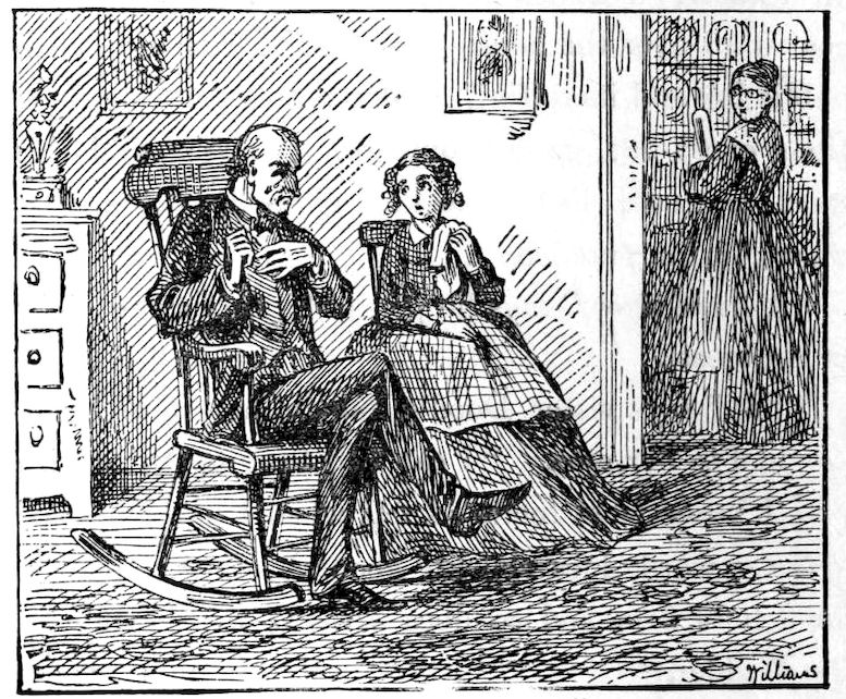 And I shant begin to tell how Whitfield and Tirzah Ann acted when they come into that bright cosy little home, and Josiah put the deed of it into their hands; I dassant tell, for anybody would think they was lunys. I have seen tickled folks in my life, but never, never, did I see tickleder, that I know. Why, Whitfield looked fairly pale at first, and then his face flushed up as happy as a king. And Tirzah Ann cried a little, and then she laughed, and then she went to kissin’ of us like a little fury; she kissed her pa and me, and Whitfield and Thomas J. and Maggy, and—well, she kissed the hull on us more’n forty times I do believe.
