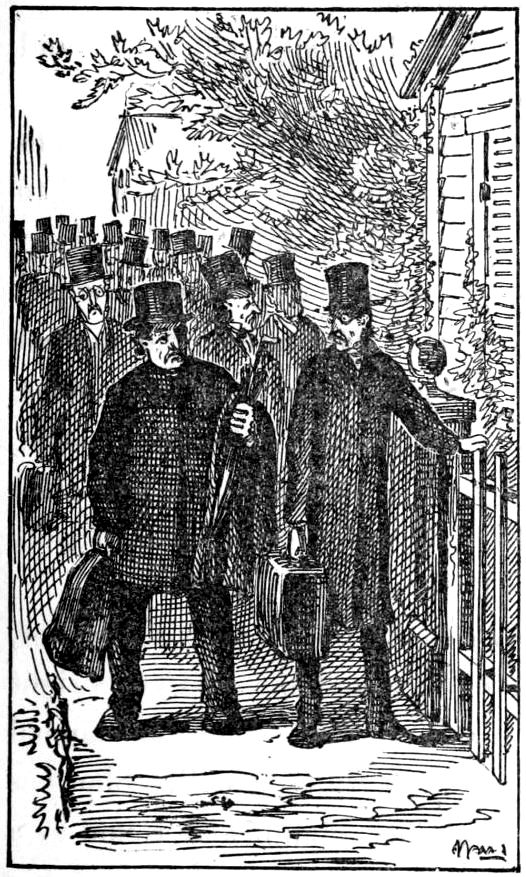 570He was a standin’ out in the front portico as I said this, and says he: “Yes there is, Samantha; this house that stands right here by it, is jest as pretty;” and it was. There it stood, so peaceful and pretty, right by the side of this one, with green shady yards in front, and a handsome little lattice work gate all runnin’ over with green vines and poseys openin’ between the two. Oh! how perfectly beautiful they did look, and I knew this thought goared Josiah and me at the same time,—what if Thomas J. could be the doctor here in Jonesville and live right here by Tirzah Ann. Oh, what bliss it would be! Then I turned and went to unpackin’ my vittles, and settin’ the table. It looked splendid; and after I got it all done I sent Josiah for the childern and—well, I sent him for all on ’em.
