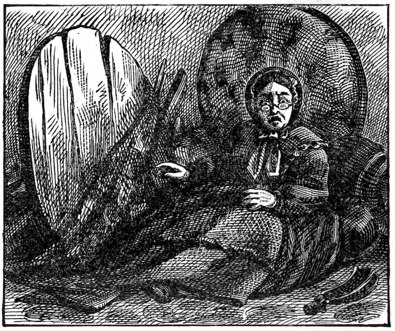 Thomas J. wasn’t comin’ home till Saturday. We see him and Tirzah Ann as we come through Jonesville, and they said the last of the ‘Creation Searchers’ had got home, but their conduct had leaked out through the bride and the Editor of the Auger’ses wife, and they dassant go out in the street, any one of ’em, they had so much fun poked at ’em. Betsey come in at night; she had been to Miss Daggets to work, and she had a flour sack with some beans, and other provisions.