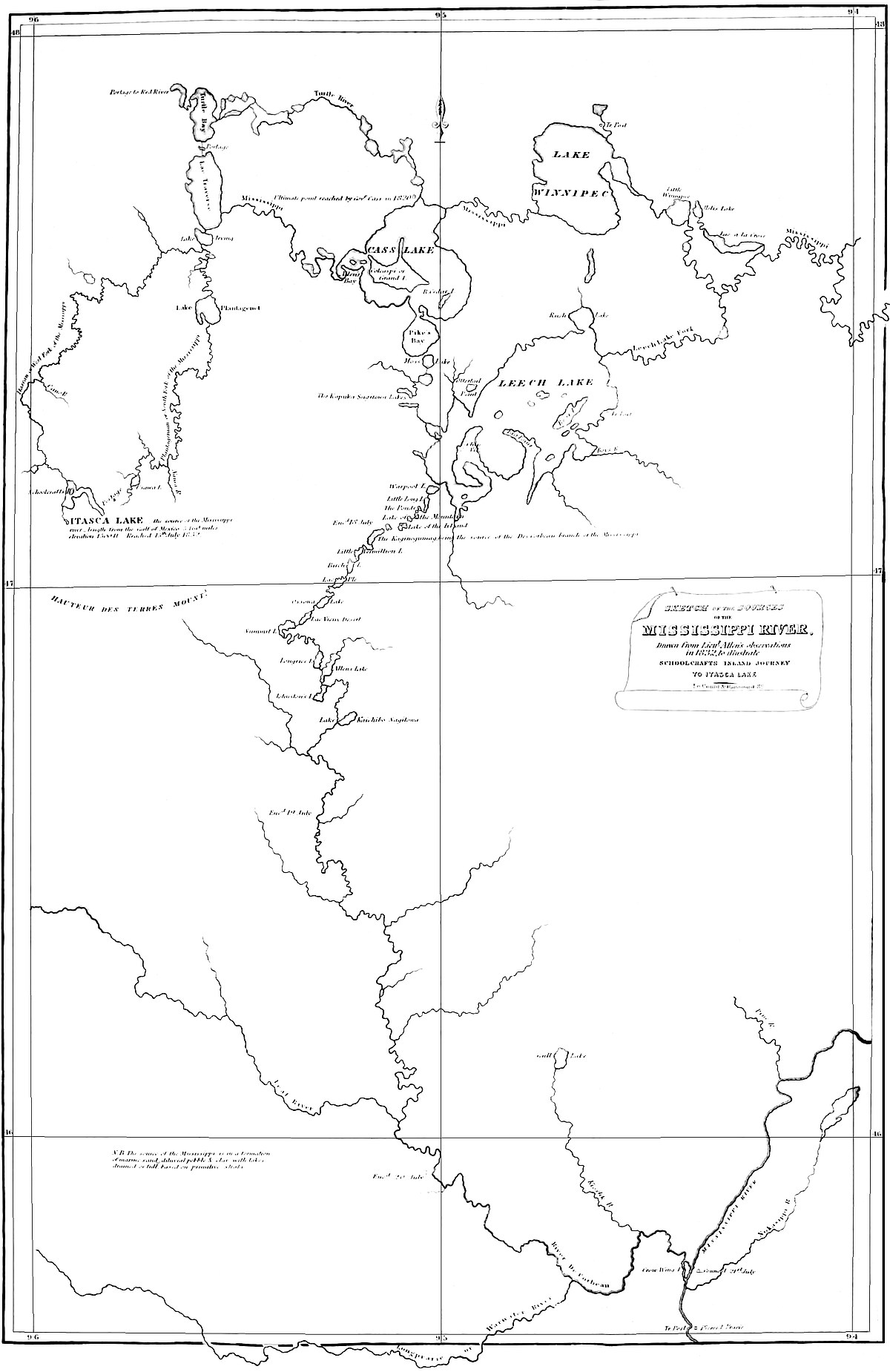From the best information that could be obtained, the Mississippi was represented to have its origin in a lake called La Biche, supposed to be sixty miles distant, in a north-west direction. Upon this estimate, the length of the river was computed to be 3038 miles, and by a series of approximate estimates, its altitude placed at 1330 feet above the Atlantic. Numerous rapids and lakes were, however, stated to exist in this remote part of the stream, and a degree of vagueness and uncertainty exhibited11 in relation to it, which evinced, that the traders, who were relied on for information, either, had seldom frequented it, or preserved an indefinite recollection of its geographical features.