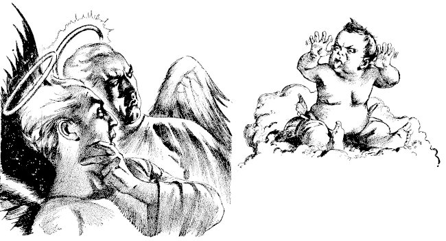 While this murky atmosphere seethed and thickened inside the nursery, the sun shone brightly outside, and the distant heavens were blue. They were blue, that is, except to a single and very remote blemish. In the timeless and vapored regions of Heaven's own dispatching department there lay a distinct cloudiness that emanated mainly from the dismayed faces of those two enterprising and well-intentioned angels, Mac and Haywood.