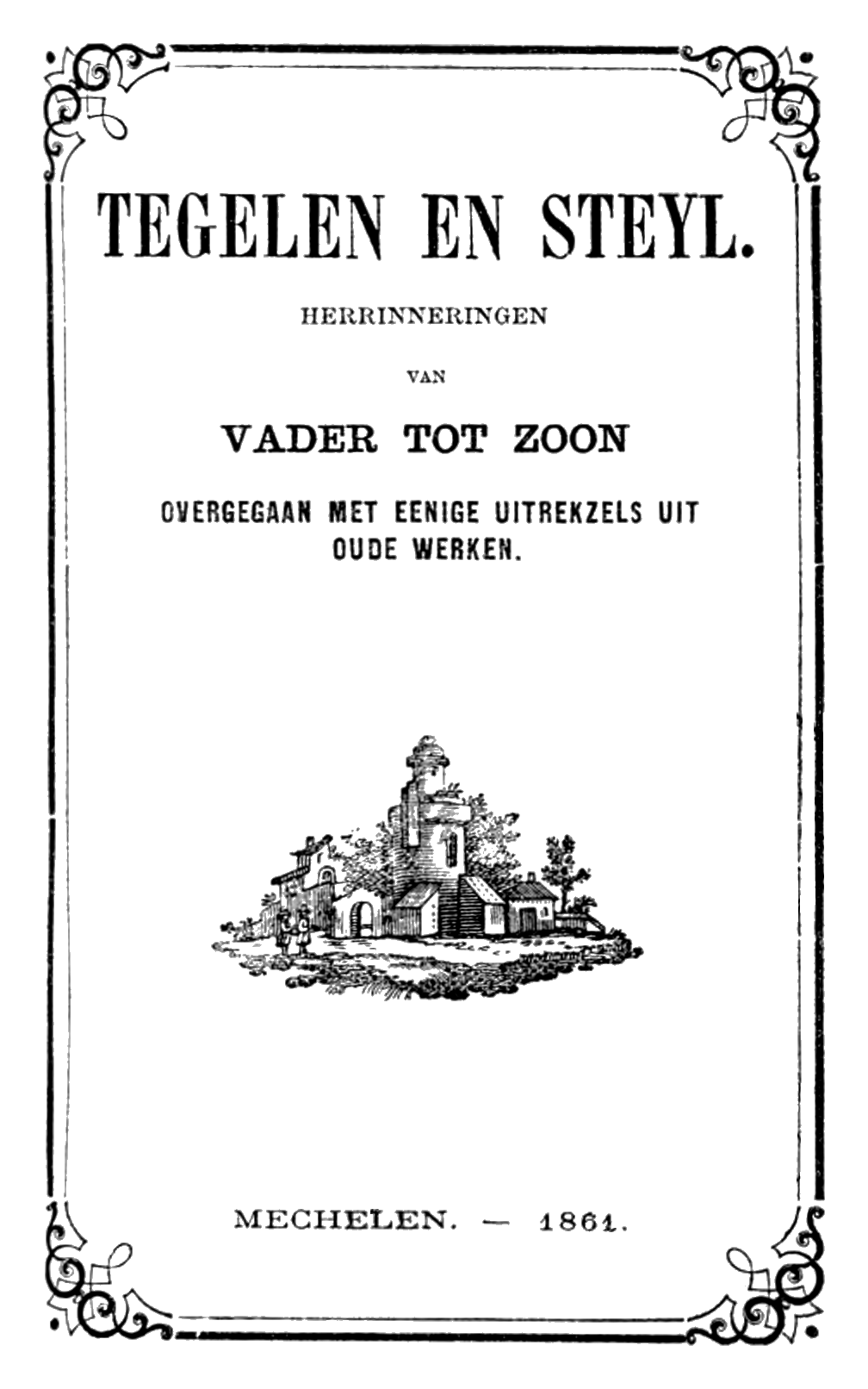 Steyl op de Maas gelegen, gehucht van Tegelen, ontleend zynen naam van de Steile oevers waarop het eerste huis (dat van P. Franssen laater) gebouwd, en destyds het Steyler-huis genoemd wierd. Dit oud[6] gebouw is in 1825 afgebroken. Het Veer lag in de 18e euw nog boven het oud Steyler-huis, en als hetzelve door verzandigen aen den linker-oever der Maas heeft moeten verlegd worden, is te gelyker tyd het tegenwoordige huis van den heer N. Ronck dat tegenover het oud Veer stond, afgebroken en herbouwd op de plaats waar het nu staat. Het zogenaamde Enkes-huis, nog in zyne volle oudheid, bewyst dat dezen hoek deel maakte van de eerste huizen van Steyl.