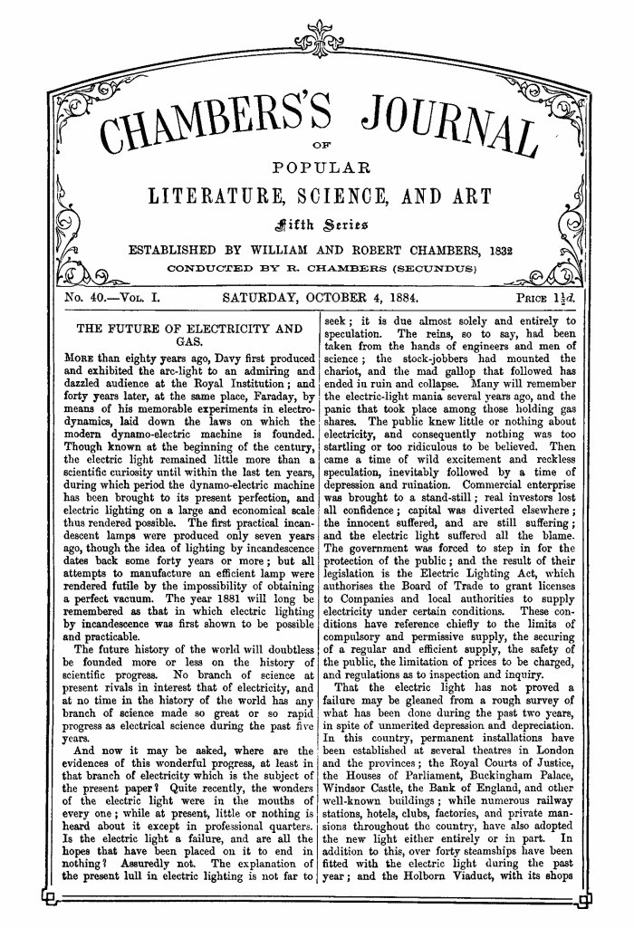 Title: Chambers's Journal of Popular Literature, Science, and Art, Fifth Series, No. 40, Vol. I, October 4, 1884