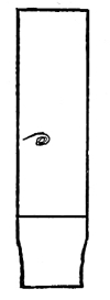 We will now consider the cross-cut saw tooth in regard to rake or pitch; this being one of the most important features, too much care cannot be taken to have the correct amount of pitch for the duty required. To illustrate this. Fig. 5 represents a board, across which we wish to make a deep mark or score with the point of a knife. Suppose [Pg 13] we hold the knife nearly perpendicular as at B; it is evident that it will push harder and will not cut as smoothly as if it were inclined forward as at A. It follows then that the cutting edge of a cross-cut saw should incline forward as at C, Fig. 6, rather than stand perpendicular as at D, Fig. 7.