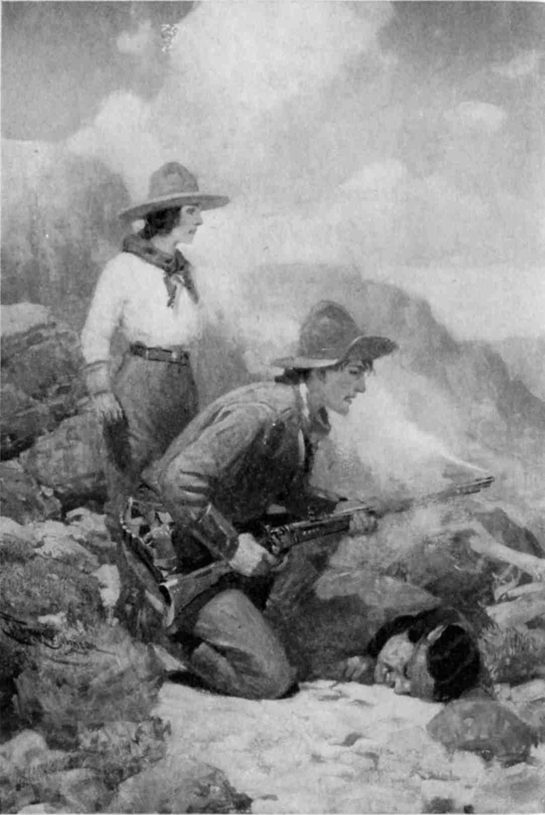 Rawley went back, crouching under the caved roof. His arms were round Nevada when he stopped and picked up the pipe, slipping it into the pocket of her blouse. Then, pulling her gently to him, he drew her out from under the beam and into the granite-walled storehouse. As he lifted her in his arms Nevada groaned.