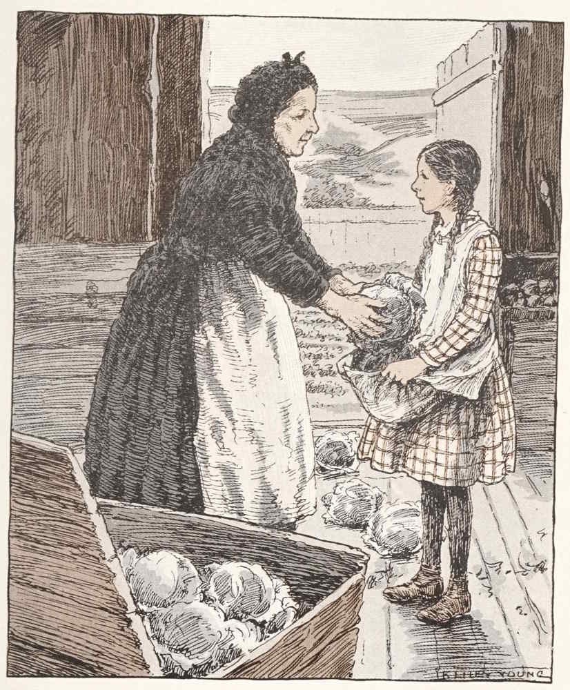 “What have you done, child?” she asked in terror. “The sheep is dead. You’ll catch it from old Miss.” (She meant Great-Aunt.) “You gave it a whole potato and that stuck in its throat, you see, and choked it so it couldn’t breathe. O me! O me! What a misfortune!”