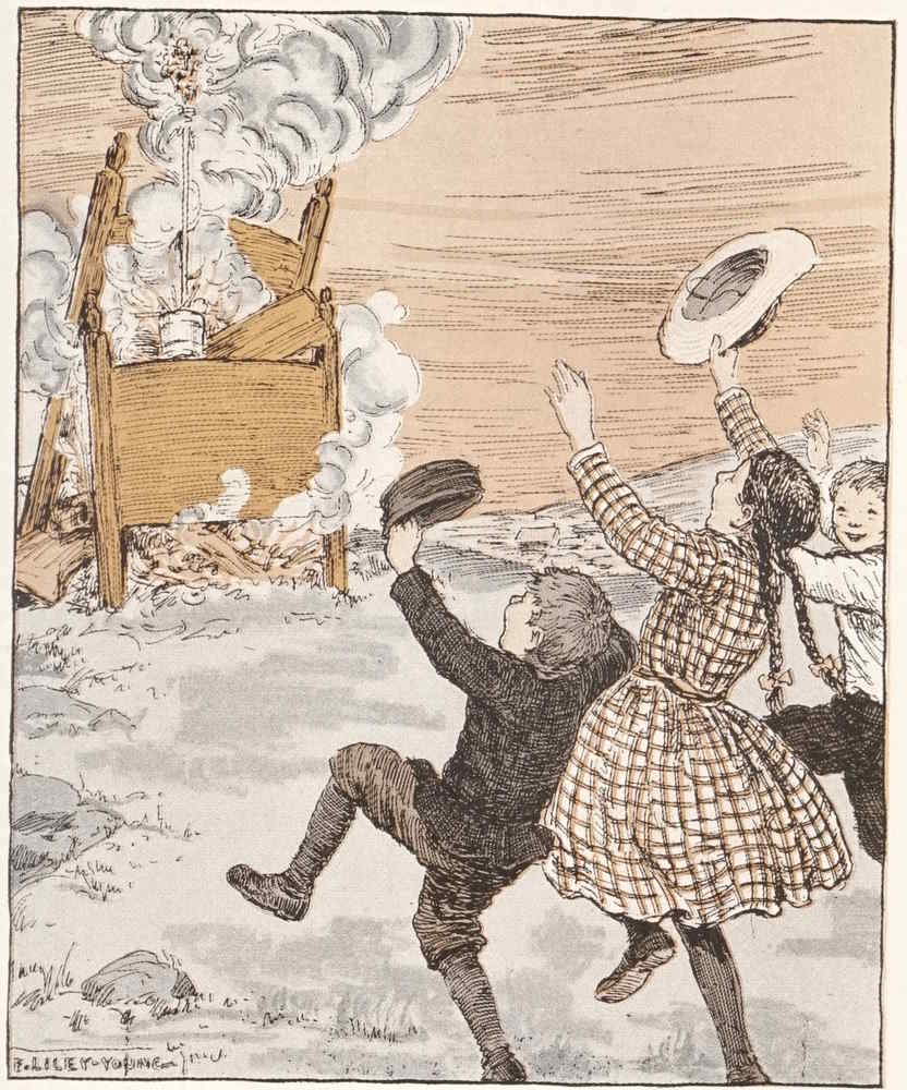 We found a board and seesawed up and down, up and down, until Nella, the parlor maid, came out with the message that we were to stop. We might pinch our fingers, Great-Aunt thought!