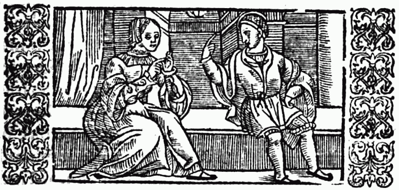 Apres que je l’euz escouté, & bien recueilly ses parolles, je luy ditz. O Guenelic, soyez certain que je suis fort marrie de vous veoir en ces fascheux & ennuyeux termes. Il semble par voz parolles que je soye quelque femme lascive. Ne considerez vous pas en vous mesmes ce que je vous ay predict, & encores (si c’est vostre plaisir) le vous veulx reiterer. C’est que mon mary m’a tousjours veu user de telle honnesteté & modestie, que par ce moyen il n’a aulcune dubitation sur moy : & bien me peulx glorifier que jusques a present, tellement ma vie a esté instituee, que n’ay esté digne de reprehension : & je vous supplie que vous desistez de telle timeur, qui est sans occasion : & quand a ce que me avez dict d’ung mien serviteur : lequel vous a monstré quelque menasse, je ne puis ymaginer dont procede la cause : & ne debvez craindre que de mon sens je soye si alienee que je luy aye exhibé ce qui est digne d’estre confermé soubz profonde silence. Apres avoir ce dict, nous feusmes quelque espace de temps sans parler : car entre nous les continuelz souspirs pulluloyent, en jectant doux & amoureux regardz, en sorte qu’il nous sembloit que nature de soy mesme s’esmerveillast, puis apres Guenelic reprint le propoz, & deist ainsi.
