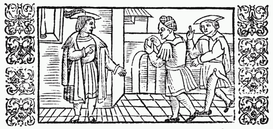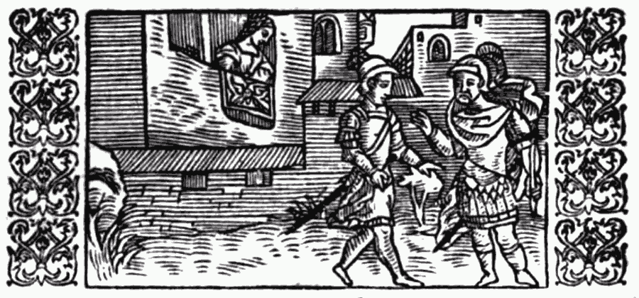 Le rutilant filz de Iperion regissant les Dorez frains, jadis follement desirez par le presumptueux Phaeton desja rendoit a toutes choses leurs propres couleurs noircies par la princesse de tenebres : quand mon mary m’envoya demander si je vouloye aller avecques luy au lieu ou l’on faict droict a chascun, dont je fuz moult esmerveillee : car parce qu’il m’avoit veu parler a mon amy, je n’esperoys plus qu’il me feust permiz d’y aller. Las je ignorois la cause pourquoy il le faisoit, ce que j’ay sceu depuis a mon deshonneur & prejudice : Toutesfoys aulcunement reconfortee me levay, & en grand promptitude me habillay, combien que ce ne fut sans grande peine : parce que je sentoye tresgriefve douleur a l’occasion des blesseures que le jour precedent avoys souffert : mais la memoire de mon amy estoit si enracinee en moy, & si tresfort inseree & vive en mon cueur, qu’elle me donna force a soustenir toutes peines & travaulx, parquoy ne laissay d’aller au lieu preallegué, comme j’avoys de coustume, & ce jour mesme au soir sachant que mon mary estoit fort empesché a ses affaires, par subtil moyen je trouvay maniere de inciter mon amy a parler a moy. Et apres avoir donné & receu les amoureux salutz, & ung petit songé & en silence demeuré, me dist.