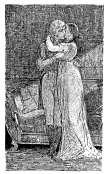 In quel momento il maestro di casa sollevava la portiera nel fondo e si vedeva una tavola apparecchiata a due posti. Donna Melania fece un rapido gesto di congedo a tutti e, figgendo sul giovane gli occhi veementi, si mosse verso la tavola come per invitarlo a seguirla. Non era più pallida, un lieve rossor febbrile le coloriva le guancie, un turbamento strano le fremeva nella persona, i suoi occhi potenti si dilatavano, brillavano come due diamanti. Il francese la guardava con stupore. Mio padre lo vide impallidire un momento, gli notò in viso un istantaneo e profondo sconvolgimento, le sue labbra si agitarono per trovar forse una parola di rifiuto.