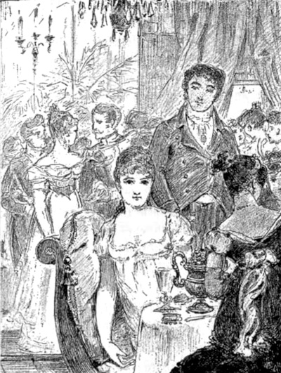 Un canapè, due seggioloni ed alcune seggiole collocate lungo le pareti, tese d’una [25] tappezzeria gialla a mazzolini di rose, avevano, nel dorso rigido e rettangolare, scolpita una lira colle sue corde.