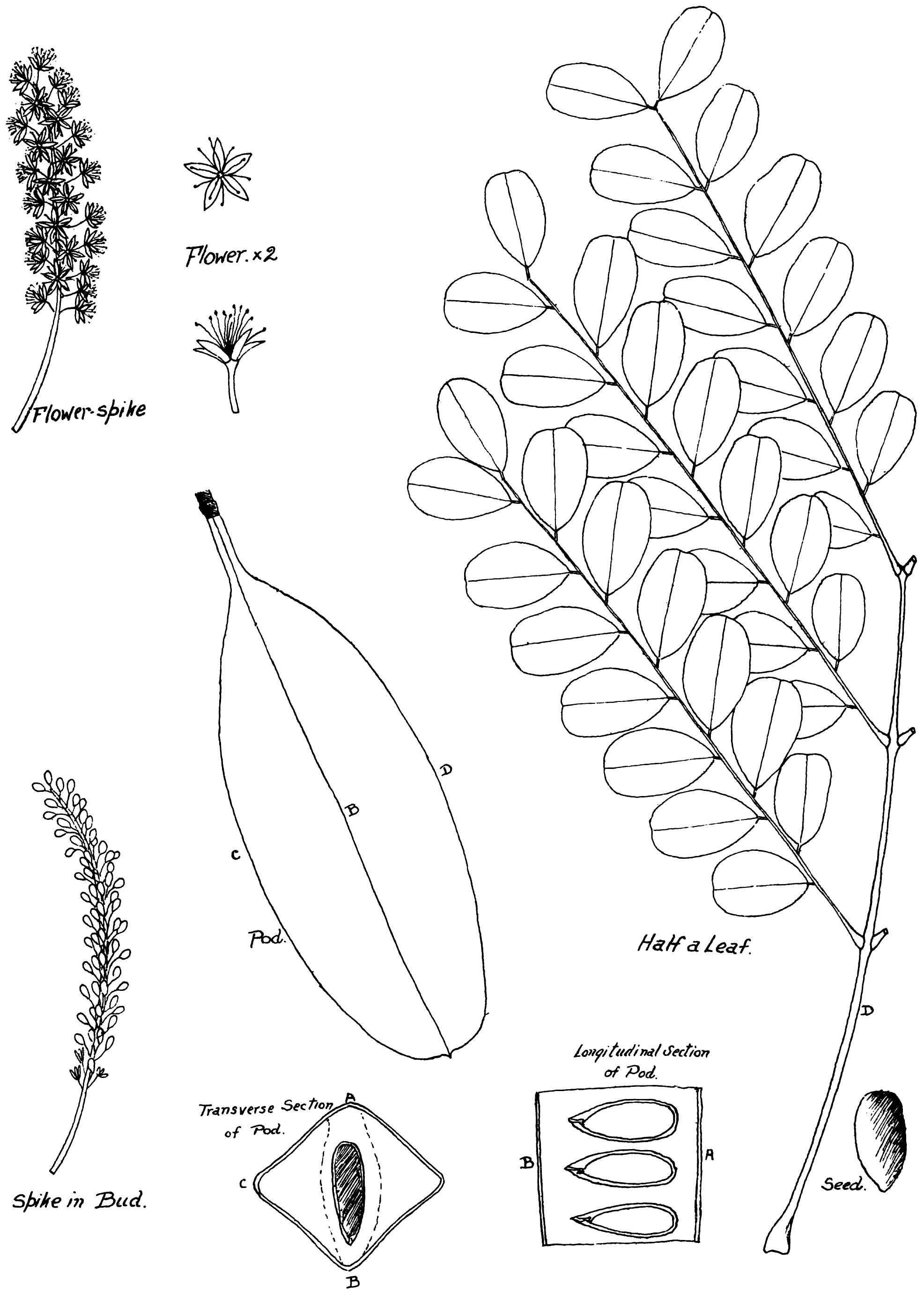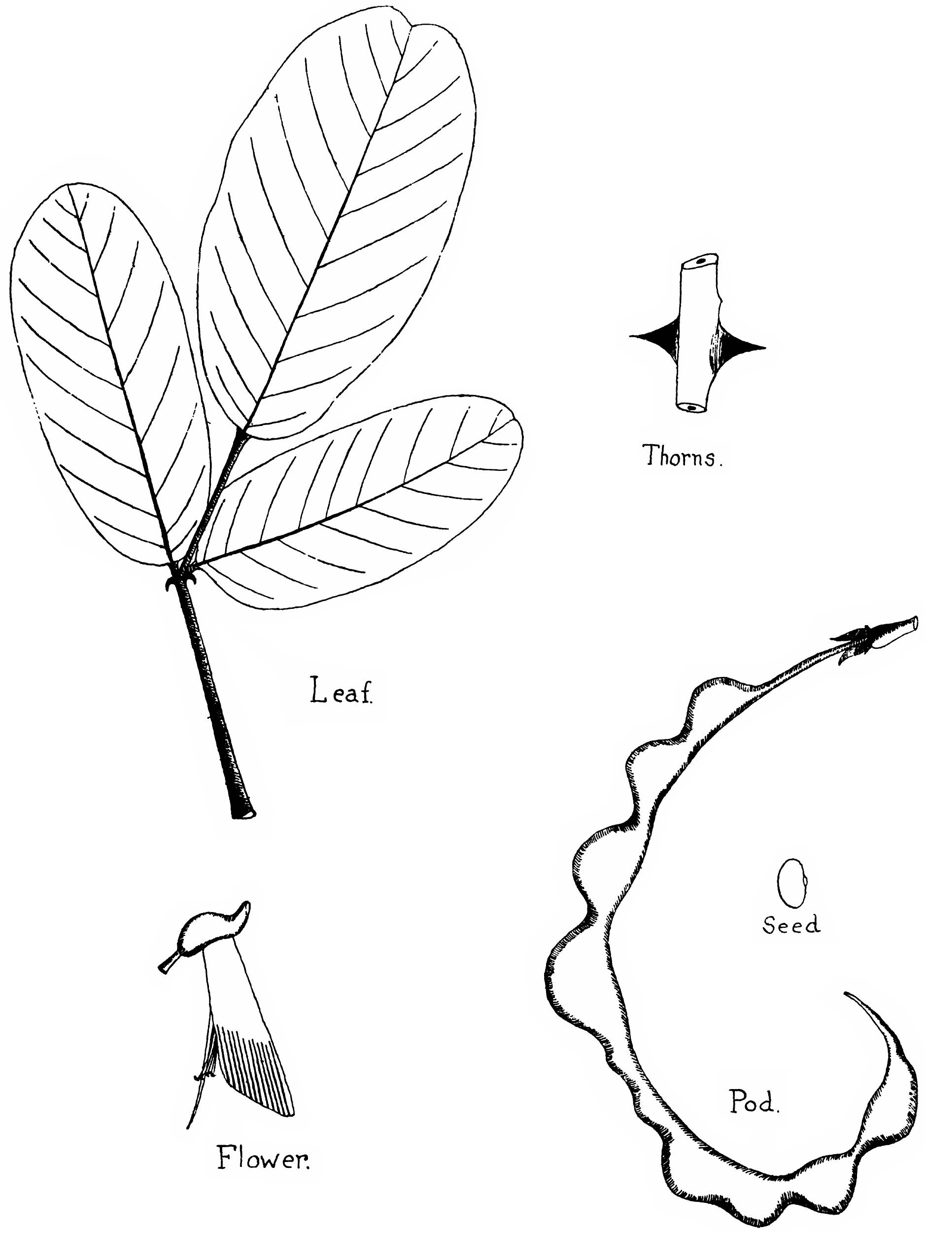 Uses.—The wood is used for implement handles of all kinds. The branches are cut for making protective farm fences, and the pods are very much appreciated by cattle.