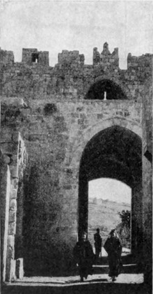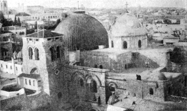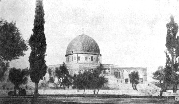 Hier hielt ich inne, um mich wieder dem Eindruck hinzugeben, den keine Vertrautheit mit der Gegend abschwächen kann, dem Eindruck der mauerumgürteten Stadt, die unter einem bleiernen Himmel grau inmitten der grauen Landschaft liegt, und doch vergoldet wird von der[S. 7] Hoffnung und dem unauslöschbaren Sehnen aller Pilger. Menschliches Hoffen, das blinde Tasten der gefesselten Seele nach einem Ziel, das jedem Wunsche Erfüllung, jedem müden Herzen Frieden geben wird, — das ist es, was die Stadt gleich einem halb lichten, halb wehmütigen Glorienschein umgibt, den so manche Zähre benetzt, manche Enttäuschung befleckt hat. Der West wandte mein Pferd, und vorwärts galoppierten wir über den Gipfel des Hügels und die Straße hinab, die sich durch die judäische Wüste hinzieht.