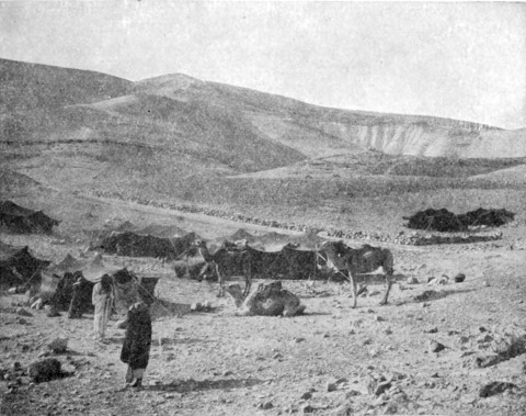 Obgleich wir Ebenen durchritten, die ganz wüste und für den oberflächlichen Beschauer fast ganz ohne charakteristische Züge waren, reisten wir doch selten länger als eine Meile, ohne eine Stelle zu erreichen, die einen Namen trug. Der Araber verfügt in seiner Rede über ein[S. 47] erstaunliches Ortsregister. Frage ihn, wo der oder jener Scheich sein Lager aufgeschlagen hat, und er wird dich sofort aufs genauste berichten. Du findest auf der Karte einen leeren Fleck und auch die Gegend, wo das Lager sich befindet, zeigt solche Leere. Dem Auge des Nomaden genügen eben die unbedeutendsten Kennzeichen, eine Bodenerhebung, ein großer Stein, die Spur einer Ruine, ja jede Vertiefung, die zur Winter- oder Sommerzeit voll Wasser steht.