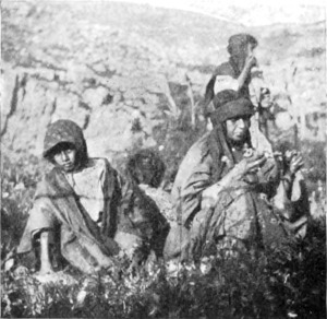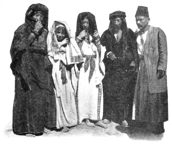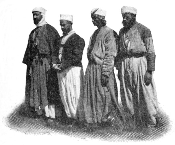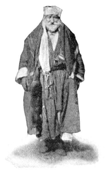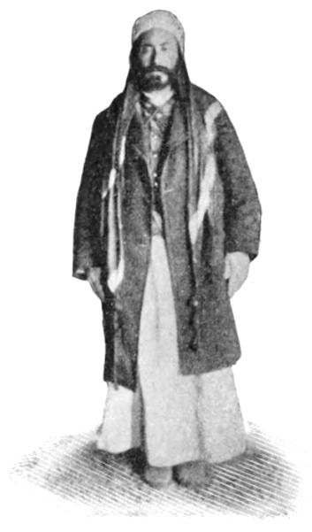 »Im allgemeinen,« fügte Namrūd hinzu, »sollten Sie nur die Zelte großer Scheichs besuchen, sonst könnten Sie Leuten in die Hände fallen, die Sie nur um des Geschenkes willen einladen, das Sie spenden. Nahār[S. 36] gut; er ist ein ehrlicher Mann, obgleich Meskin,« — eine Bezeichnung, die alle Formen leiser Verachtung in sich schließt, mag diese sich nun erstrecken auf unverschuldete Armut, Dummheit oder die ersten Stufen des Lasters.