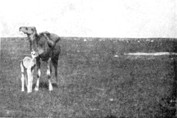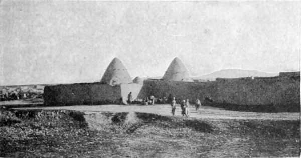 Ohne die übrige Gesellschaft anscheinend der Beachtung zu würdigen, haftete sein Auge auf den drei Scherarātscheichs, die am Eingang sitzend, Hammelfleisch und Quark aßen, und auf die fremde Frau am Feuer. Mit einem gemurmelten Gruß schritt er in den Hintergrund[S. 38] des Zeltes und schlug die ihm von Nahār dargebotene Speise aus. Es war Gablān, aus der Herrscherfamilie der Da'dja, und zwar ein Vetter des regierenden Scheichs. Wie ich in der Folge herausfand, hatte er erfahren — Neuigkeiten reisen schnell in der Wüste — daß Namrūd einen Führer für einen Fremdling brauchte, und war gekommen, um mich nach seines Onkels Zelten zu geleiten. Es waren nicht mehr als fünf Minuten seit seiner Ankunft vergangen, als Nahār Namrūd etwas ins Ohr flüsterte, worauf der letztere, sich mir zuwendend, vorschlug, daß wir nun, da das Essen vorüber, aufbrechen und Gablān mit uns nehmen wollten. Es überraschte mich, die Abendunterhaltung so kurzerhand abgebrochen zu sehen, aber ich hütete mich, Einwendungen zu machen, und als wir dann über Namrūds Ackerland und den Tneib hinaufsprengten, hörte ich den Grund. Es war Blutfehde zwischen den Da'dja und den Scherarāt. Auf den ersten Blick hatte Gablān die Abkunft der drei Männer erkannt und sich deshalb schweigend in die Tiefe des Zeltes begeben. Er wollte seine Hand nicht mit ihnen in dieselbe Hammelschüssel tauchen. Nahār kannte — wer wollte auch nicht? — die Schwierigkeit der Sachlage, und da er nicht wußte, wie die Scherarāt sich verhalten würden, hatte er uns, aus Furcht vor irgendwelchem Unfall, eilends weggeschickt. Aber am andern Morgen hatte sich die Luft geklärt (bildlich gesprochen, nicht in Wirklichkeit), und der lange Regentag sah die Todfeinde freundschaftlich um Namrūds Kaffeetöpfe in der Höhle sitzen.