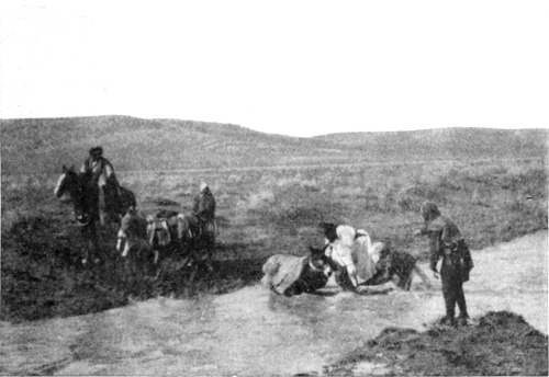 Grau und windstill brach der Morgen herein. Vom Augenblick meines Erwachens an bis zum Aufbruch waren 1½ Stunden für Vorbereitungen festgesetzt; manchmal kamen wir zehn Minuten früher fort, manchmal leider auch später. Die Wartezeit verplauderte ich mit dem Brückenwärter, einem Jerusalemer Kind. Er vertraute meinem mit[S. 16]leidigen Ohr all seine Kümmernisse, die Streiche, die ihm die Ottomanische Regierung zu spielen pflegte, und die Schwere des Daseins in den heißen Sommermonaten. Und dann das Gehalt! ein reines Nichts! Sein Einkommen war jedoch größer, als er einzugestehen beliebte, denn ich entdeckte in der Folge, daß er für jedes meiner sieben Tiere drei statt zwei Piaster gefordert hatte. Es ist sehr leicht, sich gut mit den Orientalen zu stellen, und wenn sie ein Entgelt für ihre Freundschaft verlangen, so ist es gewöhnlich sehr bescheiden. Wir überschritten den Rubikon für drei Piaster pro Kopf und schlugen den nordwärts nach Salt führenden Weg ein. Der südliche geht nach Mādeba in Moab, der mittlere aber nach Heschbān, wo der schurkische Sultan ibn 'Ali id Diāb ul 'Adwān, der große Scheich aller Belkaaraber, wohnt. Die Ostseite des Jordantales ist viel fruchtbarer als das Westufer. Liefern doch die schönen Höhen von Ajlun Wasser genug, um die ganze Ebene in einen Garten zu verwandeln, aber das kostbare Naß wird nicht aufgespeichert, und die Araber vom Stamme 'Adwān begnügen sich damit, ein wenig Korn zu erbauen. Noch war die Zeit des Blühens nicht gekommen. Ende März aber ist das Ghor ein einziger Teppich aus den verschiedenartigsten lieblichen Blüten, die alle freilich nur einen Monat lang die sengende Hitze des Tales ertragen können, ja, dieser einzige Monat sieht die Pflanzen knospen, blühen und reifen Samen tragen. Ein armseliger Araber zeigte uns den Weg. Er war gekommen, um sich den Redīfs zuzugesellen, da ein wohlhabender Einwohner von Salt ihn gegen ein Entgelt von 50 Lire als Ersatzmann gedungen hatte. Aber er kam zu spät; als er die Brücke erreichte, war sein Regiment schon vor zwei Tagen durchmarschiert. Es tat ihm leid, denn gern wäre er dem Krieg entgegengezogen, — überdies mußte er auch wahrscheinlich die 50 Lire zurückerstatten — aber seine Tochter würde sich freuen, denn sie hatte beim Abschied geweint. Er stand still, um seinen Lederpantoffel aus dem Schlamm zu ziehen.
