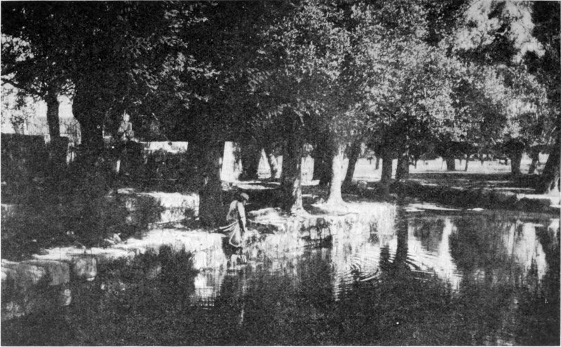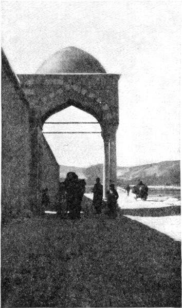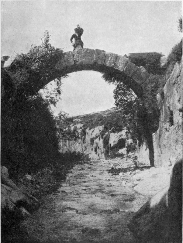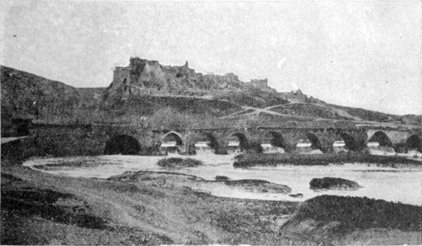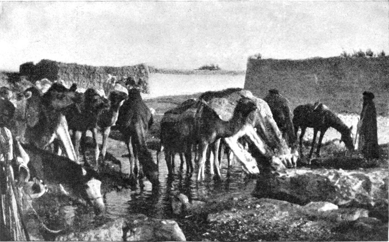 Am Flußufer war Leben. Der Boden war mit jungem Gras und gelben Gänseblümchen bedeckt, das rostfarbene Gezweig der Tamarisken zeigte die ersten Spuren des Frühlings. Ich sprengte auf die große Brücke mit dem Balkendach und den Seiten aus Gitterwerk zu — auf dieses Tor zur Wüste, das dem Reisenden einen tiefen Eindruck hinterläßt. Da lag der freie, mit kurzem Gras bewachsene, von den Schlammbänken begrenzte große Platz, den ich so gut in der Erinne[S. 13]rung hatte, und — dem Himmel sei Dank — er war leer. Wir hatten Ursache zur Besorgnis in dieser Hinsicht gehabt. Die türkische Regierung zog in dieser Zeit alle verfügbaren Truppen zusammen, um den Aufstand in Jemen zu unterdrücken. Die Regimenter des südlichen Syriens zogen über die Brücke nach 'Ammān, von wo sie mit der Bahn auf der Mekkalinie bis zu der damaligen Endstation Ma'ān, in der Nahe von Petra, befördert wurden. Von Ma'ān aus führte sie ein schrecklicher Marsch durch eine Sandwüste an die Spitze des Golfes von 'Akaba. Viel hundert Mann, viel tausend Kamele kamen um, ehe das Ziel erreicht war, denn auf dem ganzen Wege gibt es (so sagen die Araber) nur drei Brunnen, von denen der eine ungefähr zwei Meilen abseits der Heerstraße liegt und allen denen unauffindbar ist, die nicht mit dem Lande vertraut sind.