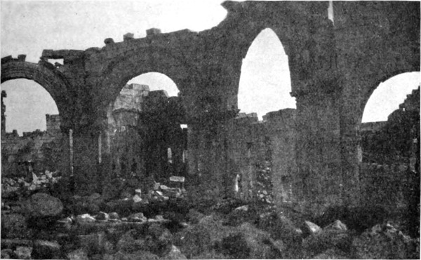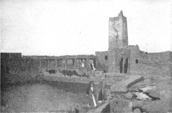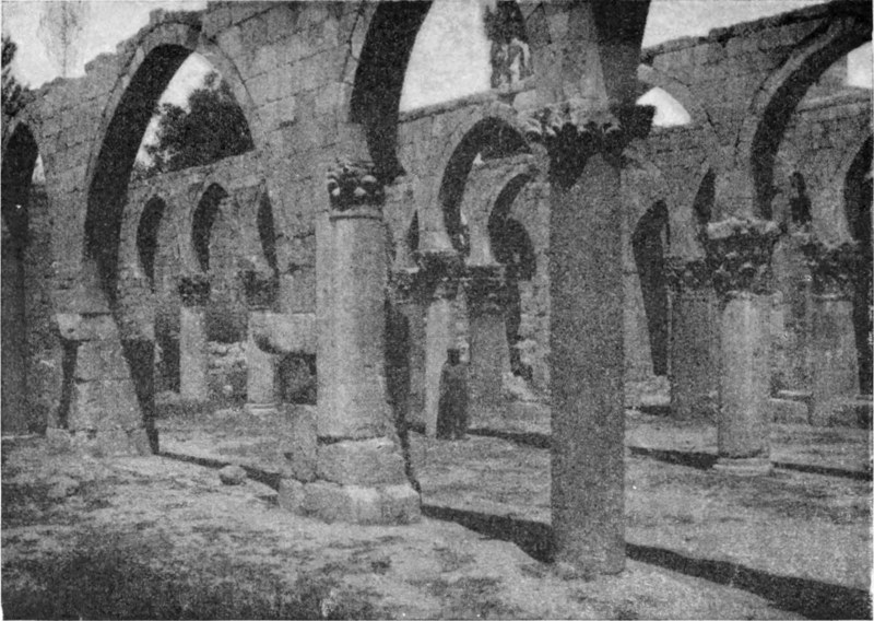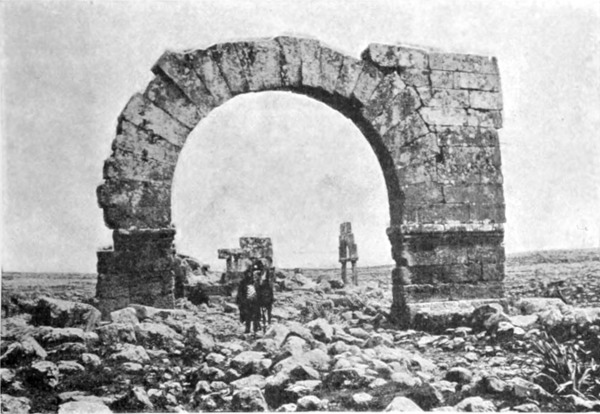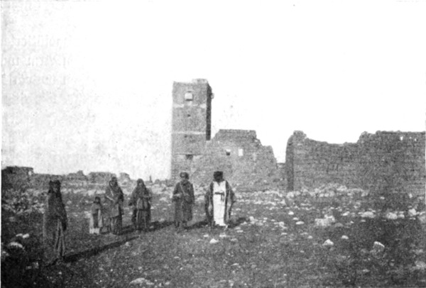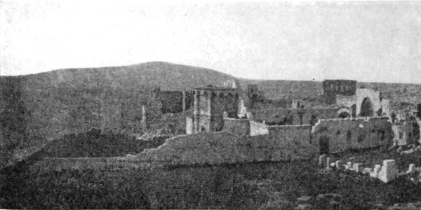 Am Morgen des 12. Februar, es war ein Sonntag, stürmte es noch immer, doch beschloß ich trotzdem weiterzureisen. Die in Tneib verbrachten Tage waren zwar nicht verloren, findet man doch nicht oft Gelegenheit, das Leben auf diesen in die Wüste vorgeschobenen Farmen stündlich zu beobachten. Aber meine Gedanken waren bereits vorausgeeilt, und ich sehnte mich, ihnen auf dem Pfade zu folgen, den sie eingeschlagen. Ich glaubte sie einzuholen, als die Hufe unserer Pferde auf den Schienen der Haddjbahn erklangen, und wir unser Antlitz der Wüste zuwandten. In nordöstlicher Richtung vorwärts eilend, ließen wir Mschitta etwas südlich liegen. Obgleich niemand, der diese Ruine in all ihrer Lieblichkeit gekannt hat, auf den Gedanken kommen wird, den jetzt so entstellten Mauern einen zweiten Besuch abzustatten, will ich doch nicht unterlassen, hier etwas über den Vandalismus zu sagen, mit dem sie ihrer Schönheit beraubt worden sind. Hätte man dieses herrliche Baudenkmal, das länger als tausend Jahre von aller Zerstörungswut, den Einfluß der Winterstürme ausgenommen, verschont geblieben war, nicht auch noch weiter unberührt in dieser Hügellandschaft stehen lassen können, der sie in ihrer phantastischen Schönheit einen so romantischen Reiz verlieh? Aber da ist die Eisenbahn erbaut worden, die Ebene füllt sich, und weder der syrische Bauer noch der türkische Soldat sind geneigt, Mauern zu verschonen, die ihnen von praktischem Nutzen sein können. Mögen deshalb alle, die die Ruine in ihrem ursprünglichen Zustande sahen, sich dankbar und ohne zu großes Bedauern der schönen Erinnerung freuen.