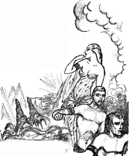 Staggering, stumbling, with the last of our strength we sped on, over the glowing soil and rocks, toward the rim of the black forest which lay now a scant quarter-mile ahead. Then suddenly Hurus Hol stumbled, tripped and fell. I halted, turned toward him, then turned again as Dal Nara shouted thickly and pointed upward. We had been sighted by the speeding cones above and two of them were driving straight down toward us.