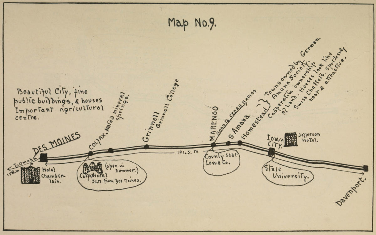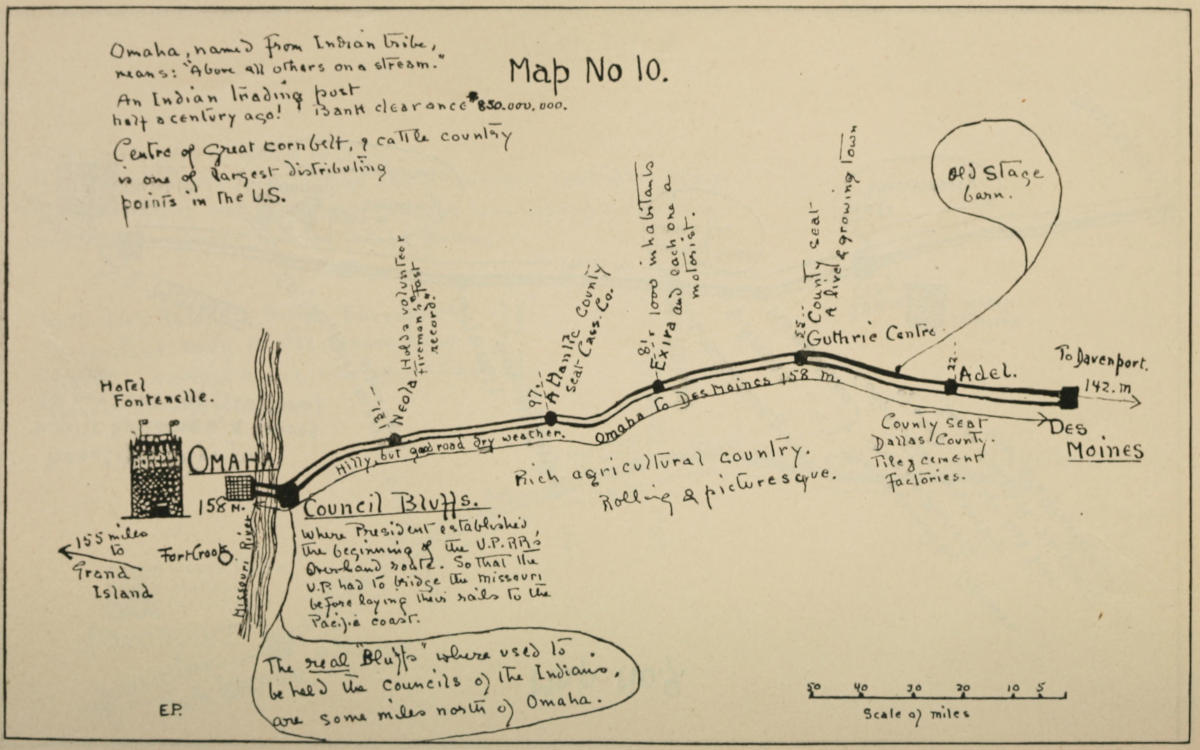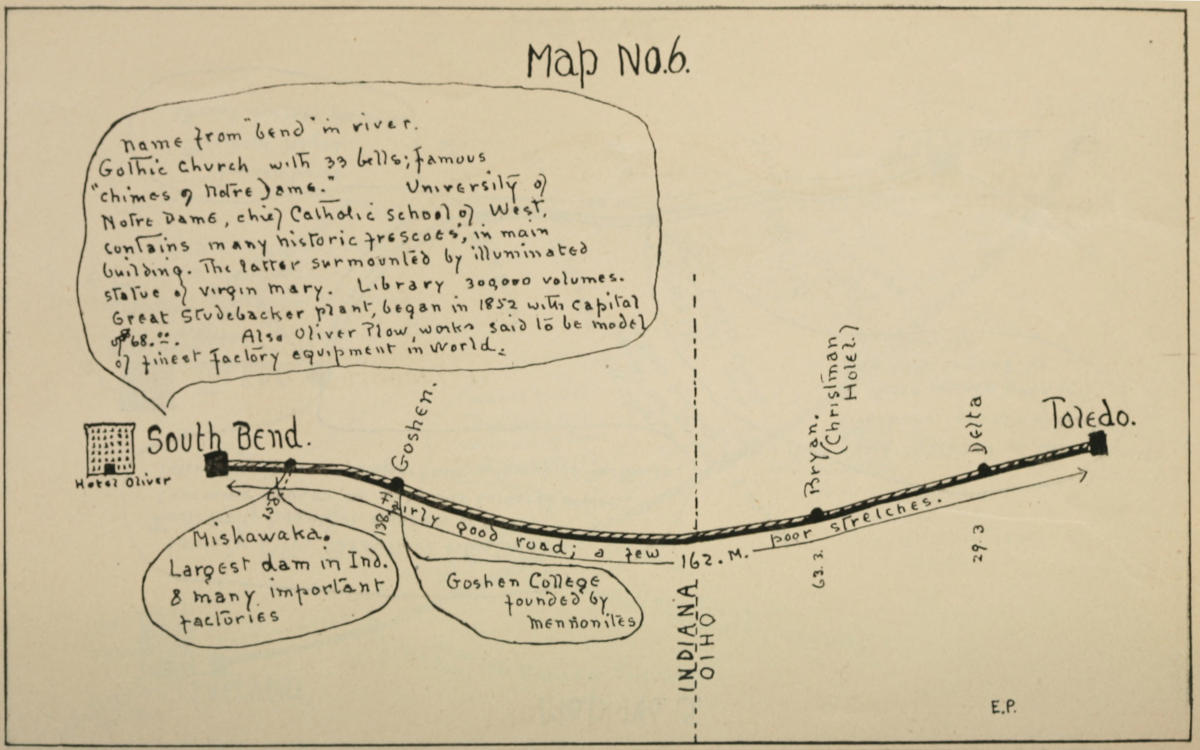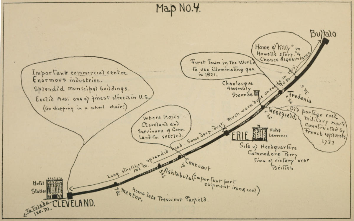 We had driven across Europe again and again. In fact I had in 1898 gone from the Baltic to the Adriatic in one of the few first motor-cars ever sold to a private individual. We knew European scenery, roads, stopping-places, by heart. We had been to all the resorts that were famous, and a few that were infamous, but our own land, except for the few chapter headings that might be read from the windows of a Pullman train, was an unopened book—one that we also found difficulty in opening. The idea of going occurred to us on Tuesday and on Saturday we were to start, yet we had no information on the most important question of all—which route was the best to take. And we had no idea how to find out!