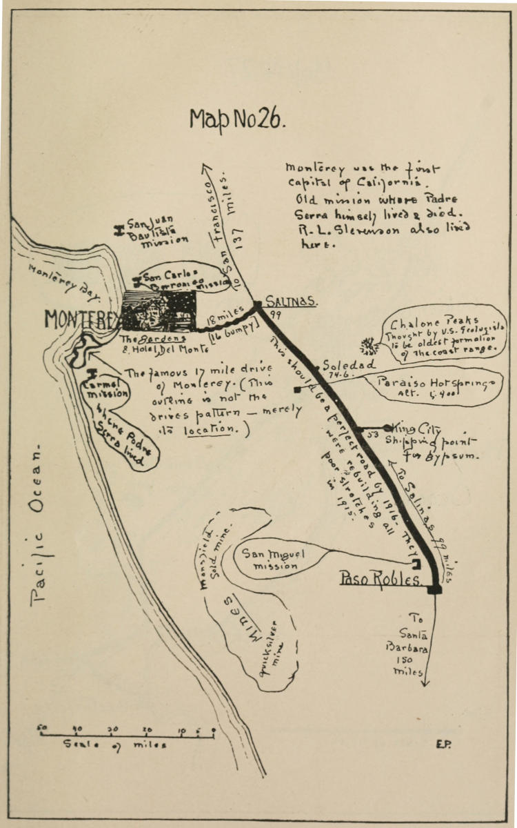 | Twenty-fifth Day’s Run, Paso Robles to Monterey (Map No. 26) |