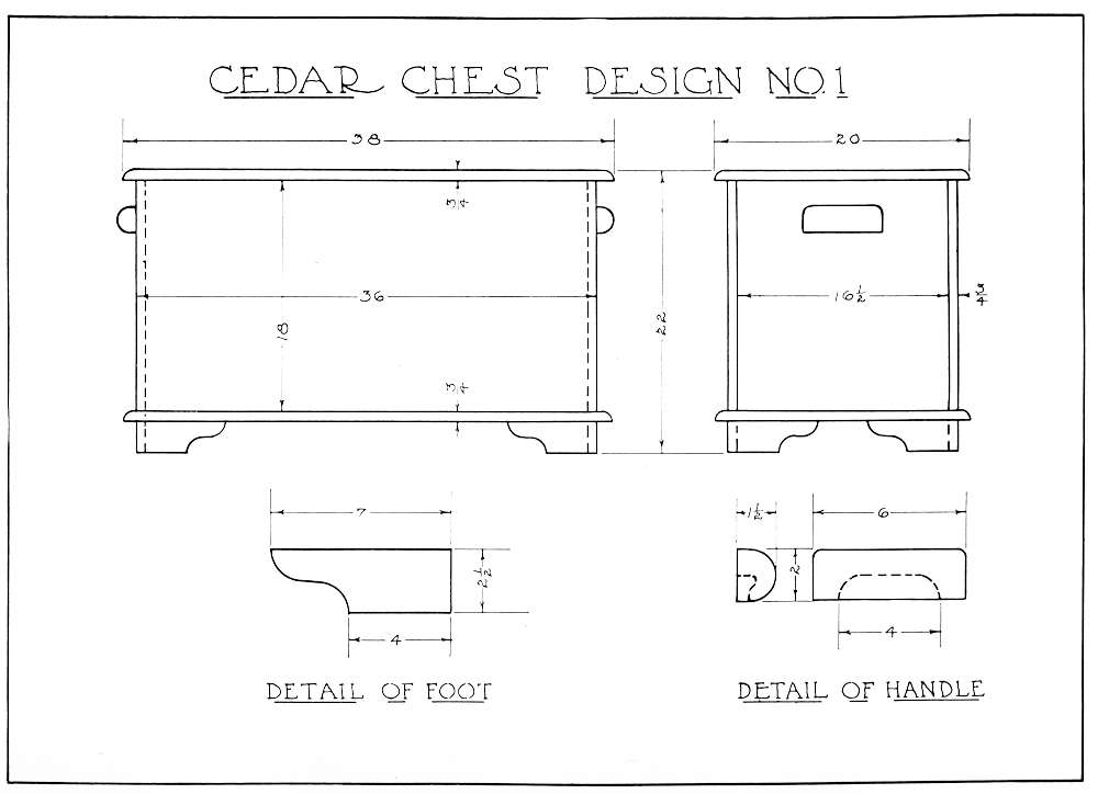 Cedar chests may be purchased ready made, of course, but their rather high price prohibits their possession by some. Manual training students or home craftsmen will find in the chest a most attractive project of construction, and one made by a boy as a present to an older sister will give the chest, in her sight, an added charm.