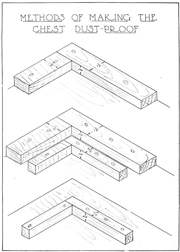 Chest Design Number 1, illustrated in perspective in Fig. 5, and whose working drawing appears in Fig. 6, is of very simple construction.