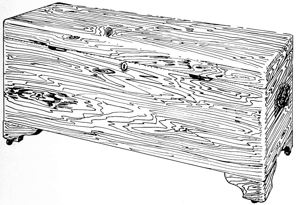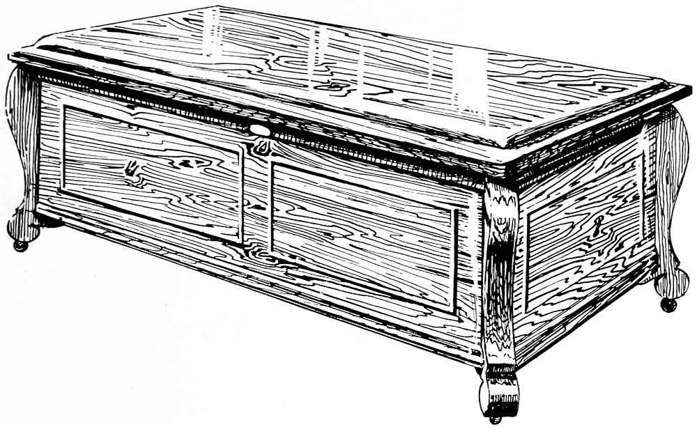 Why the chest lost its popularity is hard to determine. It may be that moths, developing in the oak chest and devouring its contents, were a determining factor, or it may be simply a passing whim of society that relegated the chest. When red cedar came into favor as the universal chest material, repelling moths and other insects, and permitting of most beautiful finishes, the chest returned to its own.
