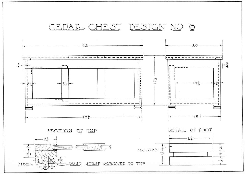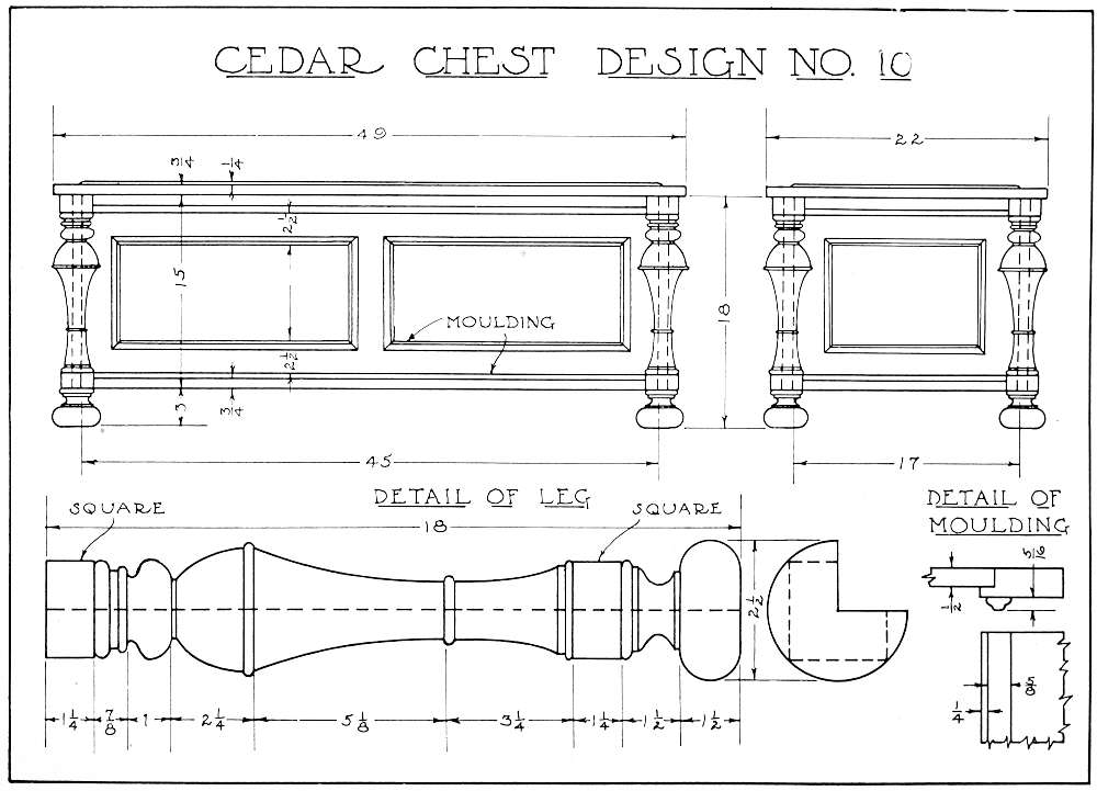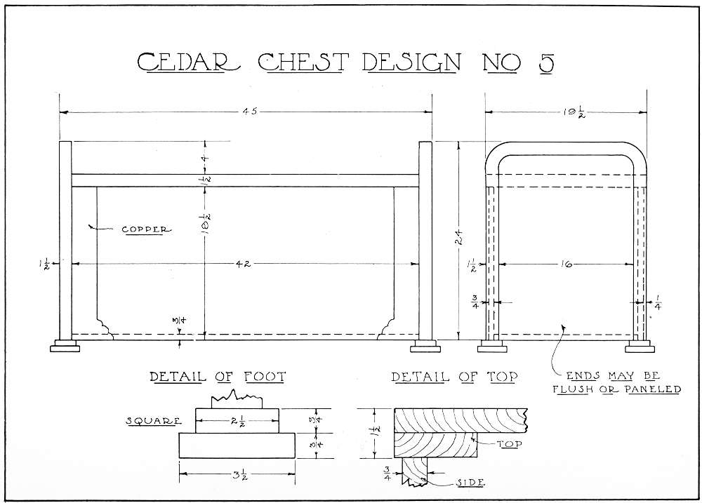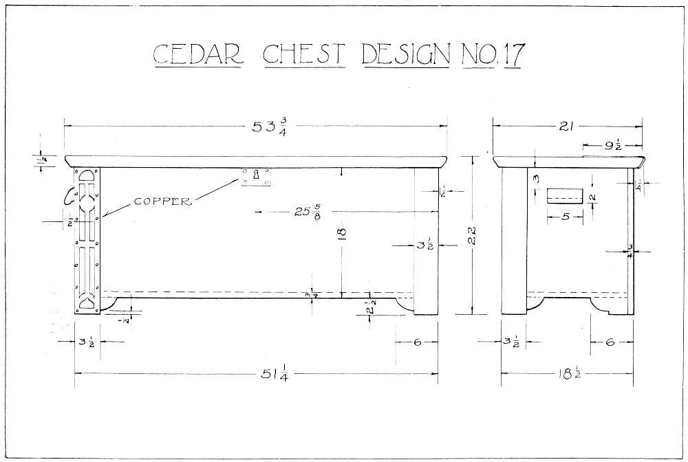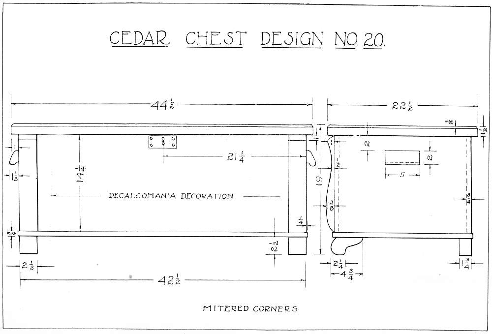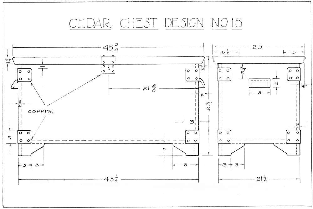 It is naturally assumed that the builder of a cedar chest knows the fundamental tool processes, as a project of this kind is no task for an absolute beginner to attempt, hence but little attention will be paid to processes that would ordinarily be known by the graduate of a grammar school.