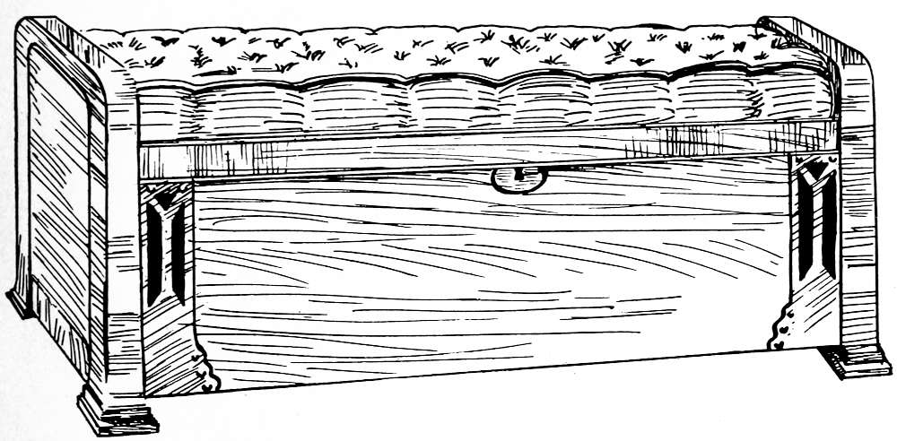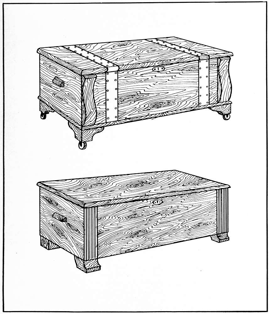 Long before the era of convenient furniture, chests, or coffers, were the one article of utility in every home. In them was kept clothing, valuables of every description, and even food-stuffs.