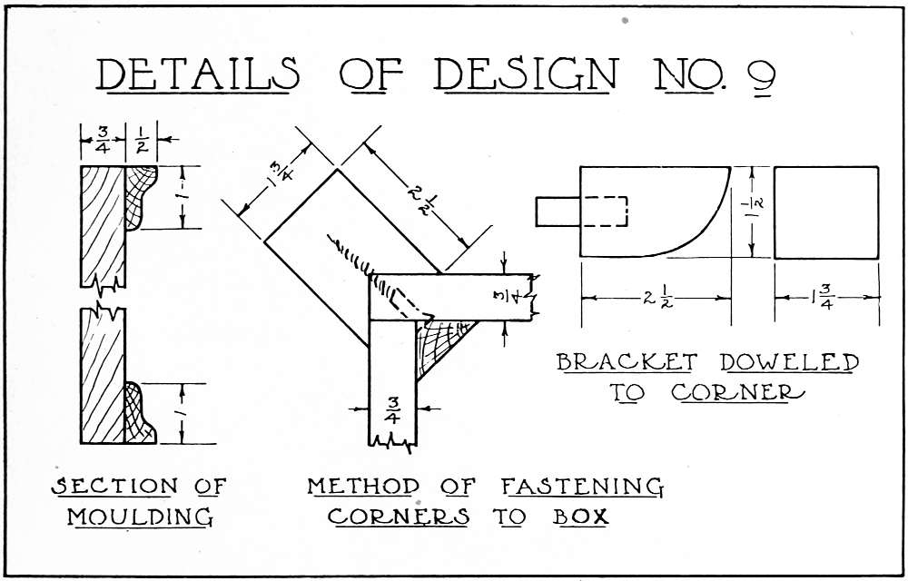 The flat surfaces will need little planing by hand since they will be entirely covered on the outside. The edges should be smoothly finished, especially the upper edges, and the under side of the top should be planed and sandpapered.