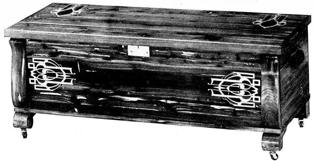 In those days few chests were made of cedar—oak being the wood preferred. Using the chests, as did the old-time bride, merely to assemble her trousseau, its storage properties were not considered as they are today.