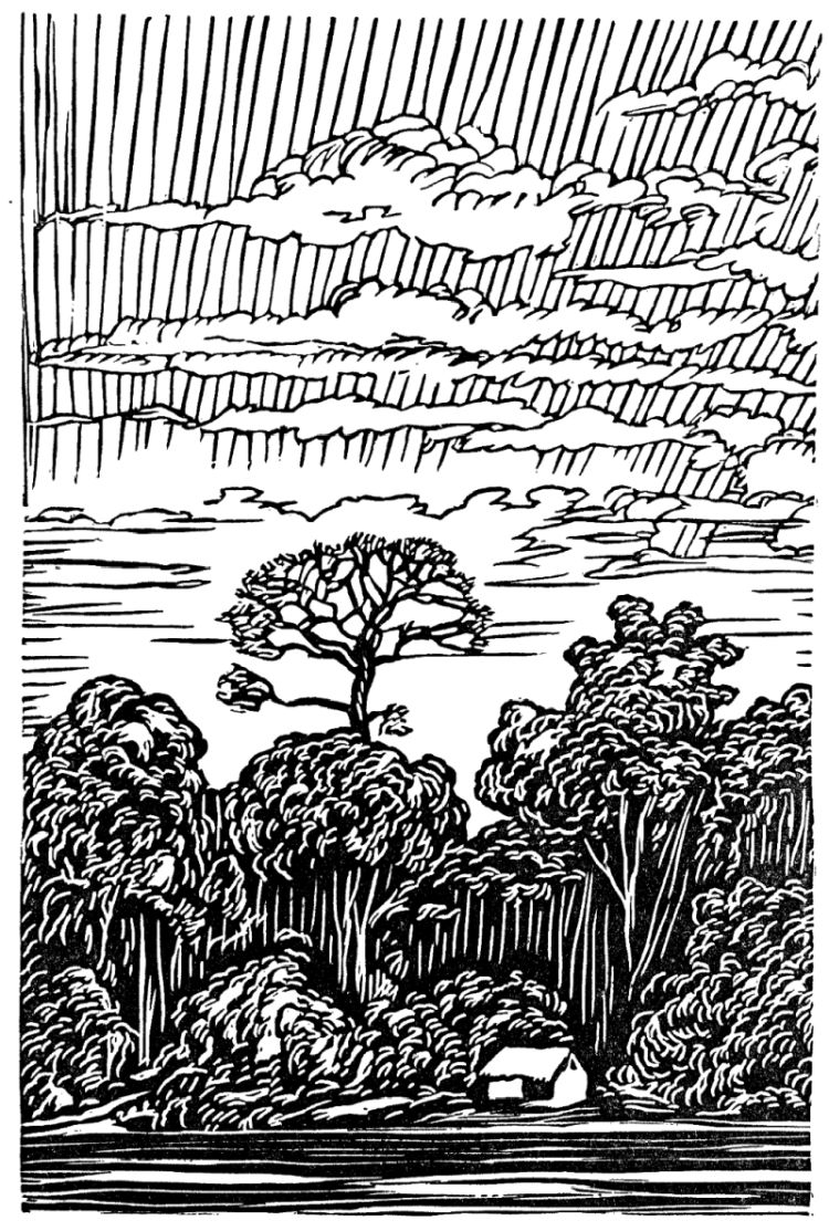 But in this Estuary I have changed that view of the world for one that is flooded with light. The earth, I can see, is a planet, a vast reflector. We look up and out from Burra, in the morning, to learn what is stored in the sky; and if there is a moon we look to the heavens at night to judge how the men at sea will fare, while we sleep. For the clouds here plainly rule our affairs; or they are the heralds of the powers which rule us. The clouds take the light of the sun, and translate it into the [Pg 232]character of our luck. On a bright morning over this bay, when the happy and careless imagine that all is well, the wind will begin to back. We are not at once aware of the reason for it, but the colours fade from the earth and from one’s spirit. The light dims. The uplands, which had been of umber and purple, become that shadow of desolation from which men seek refuge. Scud like gusts of livid smoke blows in swiftly from the southwest over the hills. The clouds which follow it are dark and heavy, and so low that they take the ground, roll over and burst. The uplands vanish. The sea grows bleak and forbidding, and the cliffs, with their crags and screes, turn into a prospect of downfall and ruin.