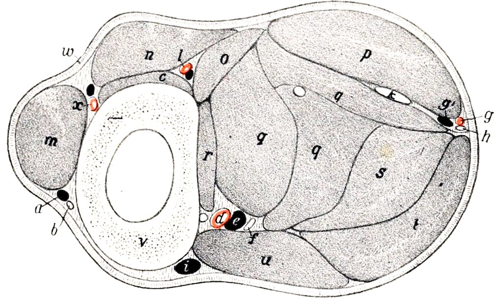 180. The homologies of the vessels of the lower parts of the limbs are still uncertain. The account given here is mainly based on the views of Sussdorf and Baum.