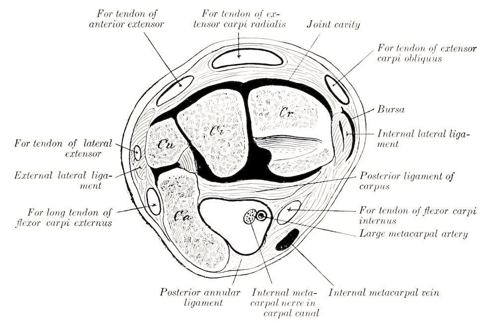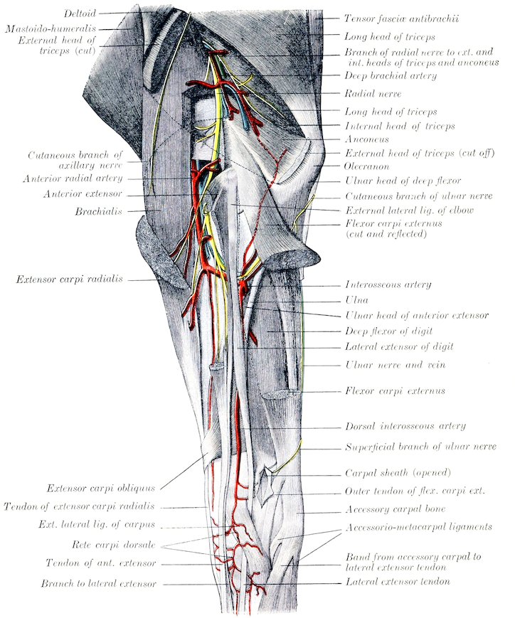 160. The artery is conveniently placed at its inflection for taking the pulse, since it is superficial and lies directly on the bone.