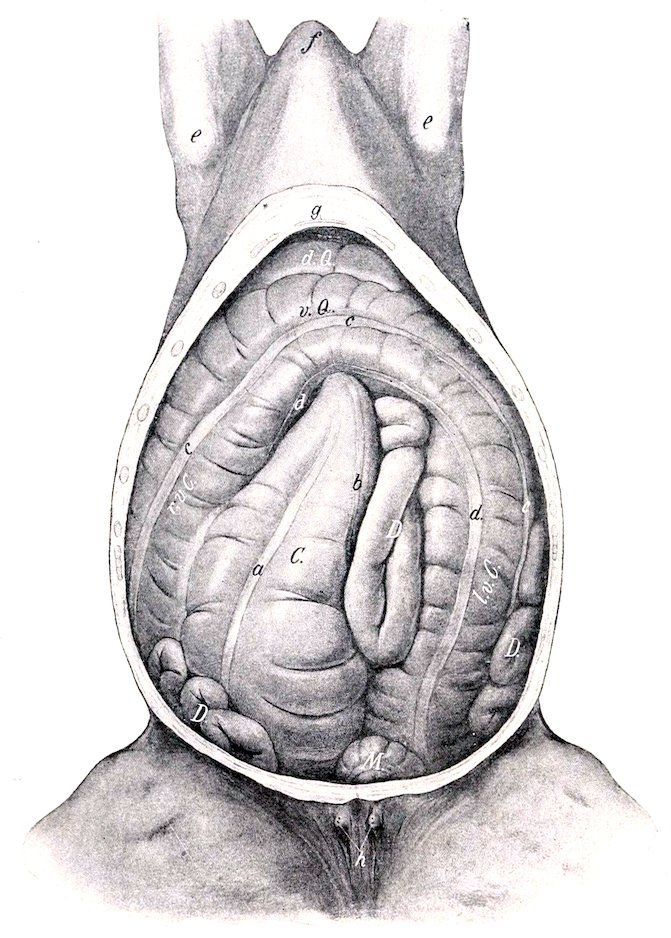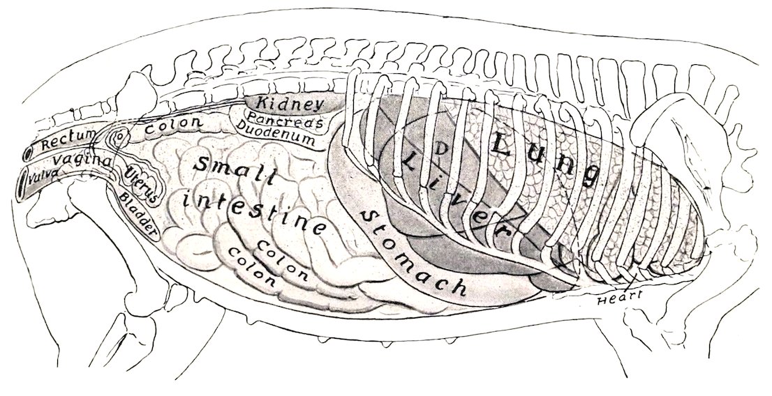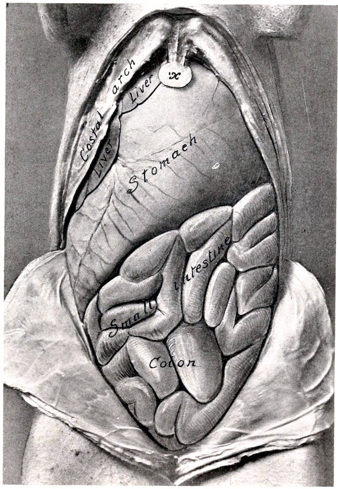 The study of frozen sections and of material which has been hardened by intravascular injection of formalin has profoundly modified our views concerning the natural shape of many of the viscera and has rendered possible much greater precision in topographic statements. The experience of the author during the last ten years, in which almost all of the material used for dissection and for frozen sections in the anatomical laboratory of this University has been hardened with formalin, has demonstrated that many of the current descriptions of the organs in animals contain the same sort of errors as those which prevailed in regard to similar structures in man previous to the adoption of modern methods of preparation.