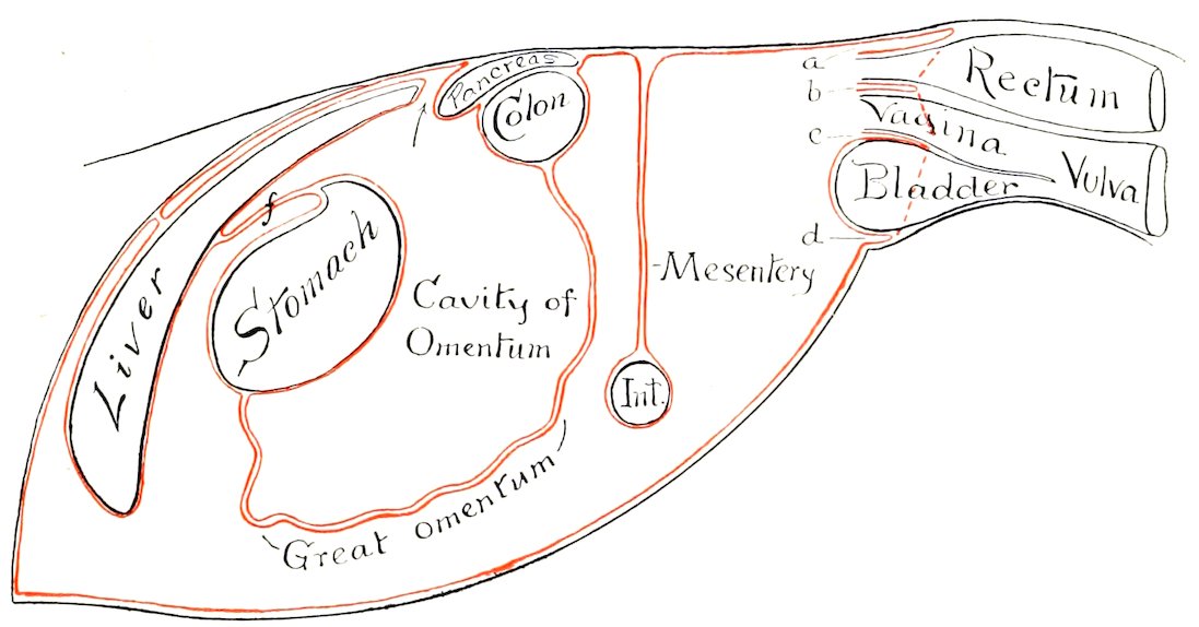 151. The arrangement is the only exception to the general rule that the serous cavities are closed. In this case the mucous membrane of the fimbriated extremity is continuous with the adjacent peritoneum, a persistence of the embryonic relations of the Müllerian duct.