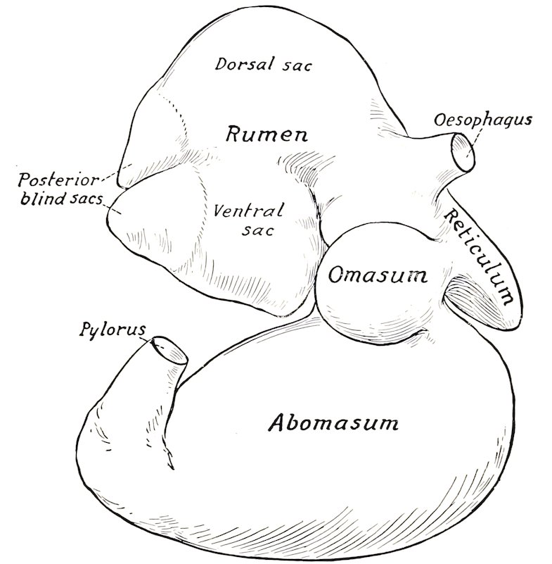 184. When enlarged, as is often the case in tuberculosis, this gland frequently causes difficulty in swallowing and in rumination and produces chronic or recurrent bloating.