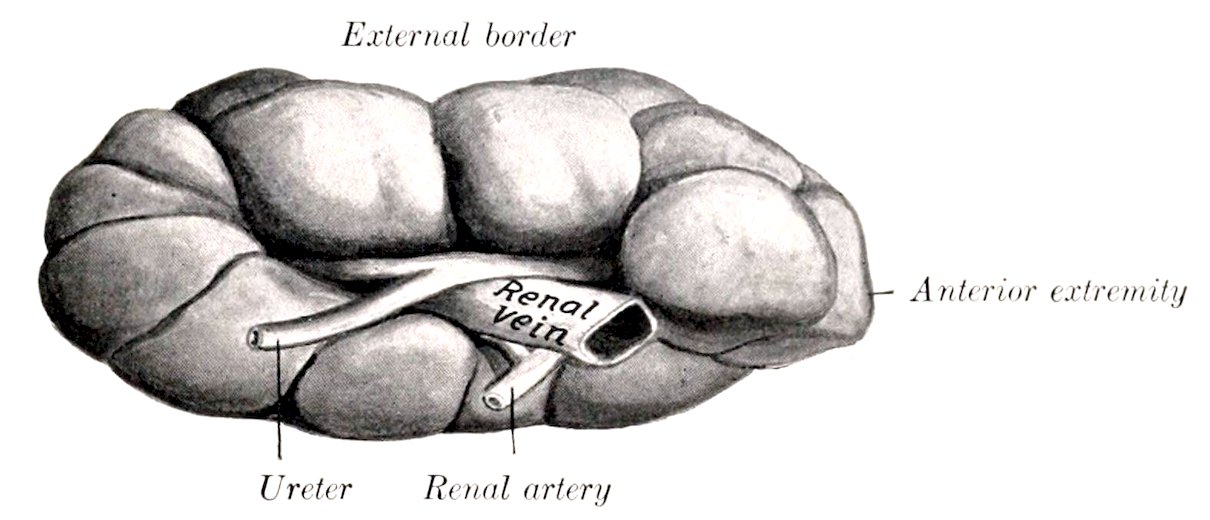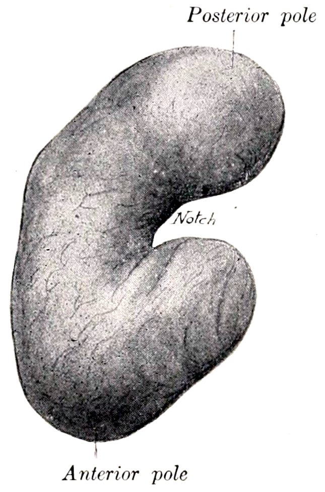 135. The kidneys are soft, plastic organs, and hence an accurate knowledge of their form can be gained only from a study of specimens which have been hardened in situ. The description here given is based on this method. For this purpose subjects should be hardened in the standing position to avoid artefacts.